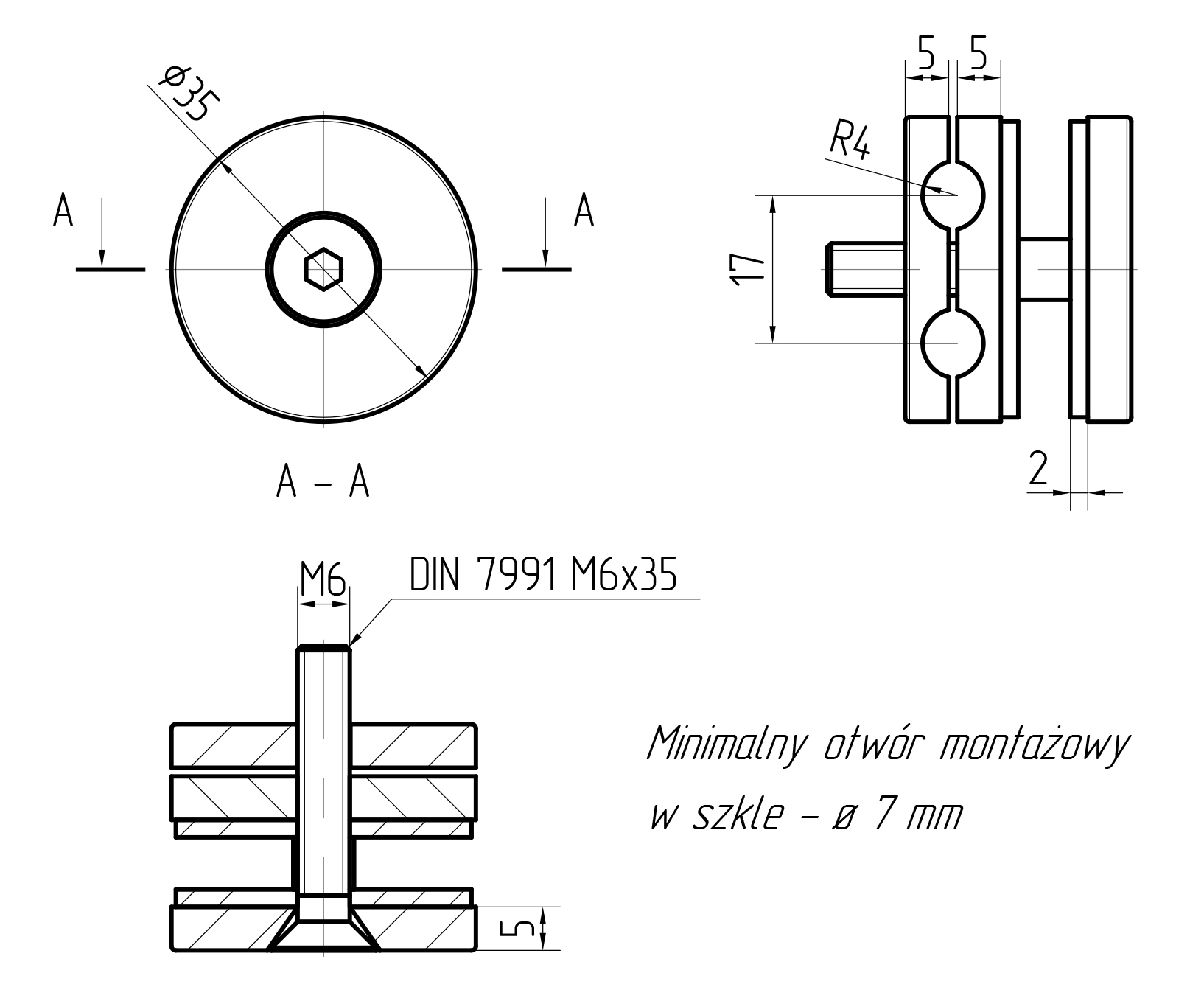 - El orificio mínimo de montaje en el vidrio: Ø 7 mm