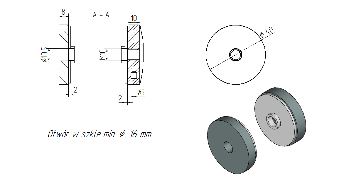 - Orificio mínimo de montaje en el vidrio: Ø 16 mm