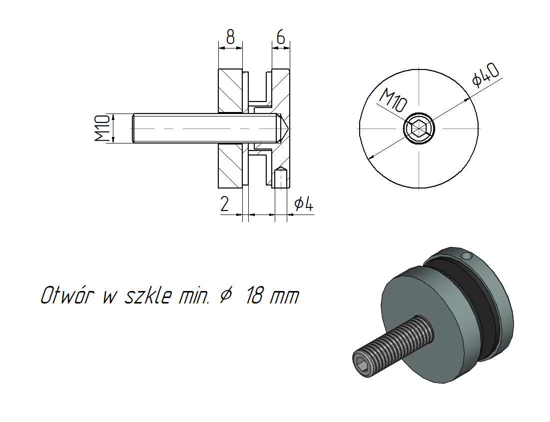 • Juntas que aíslan el vidrio del acero: goma EPDM (negra), grosor 2 mm, incluidas en el juego