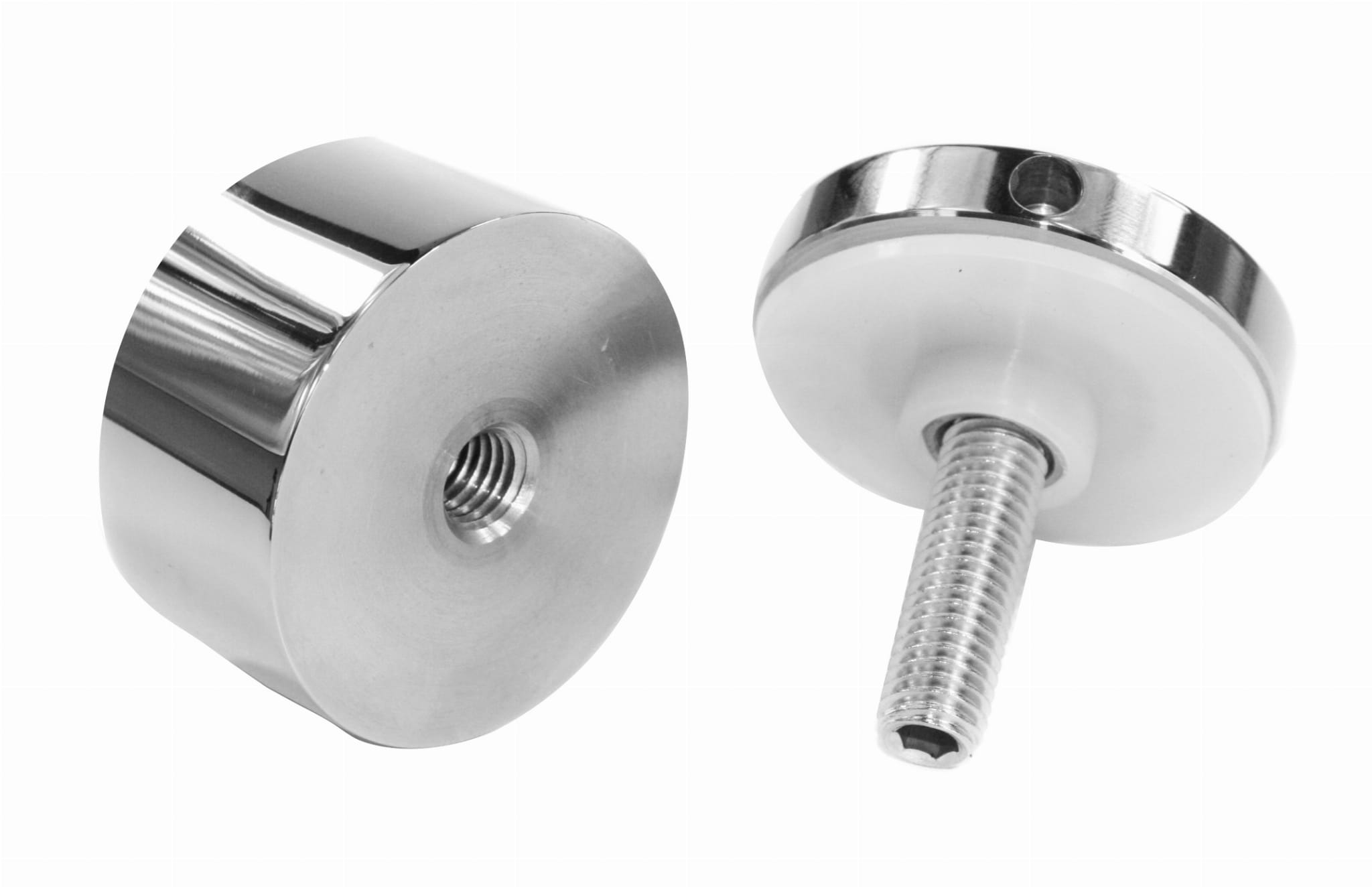 Adaptador de vidrio 50/20mm rosca M10, AISI 304, Pulido.