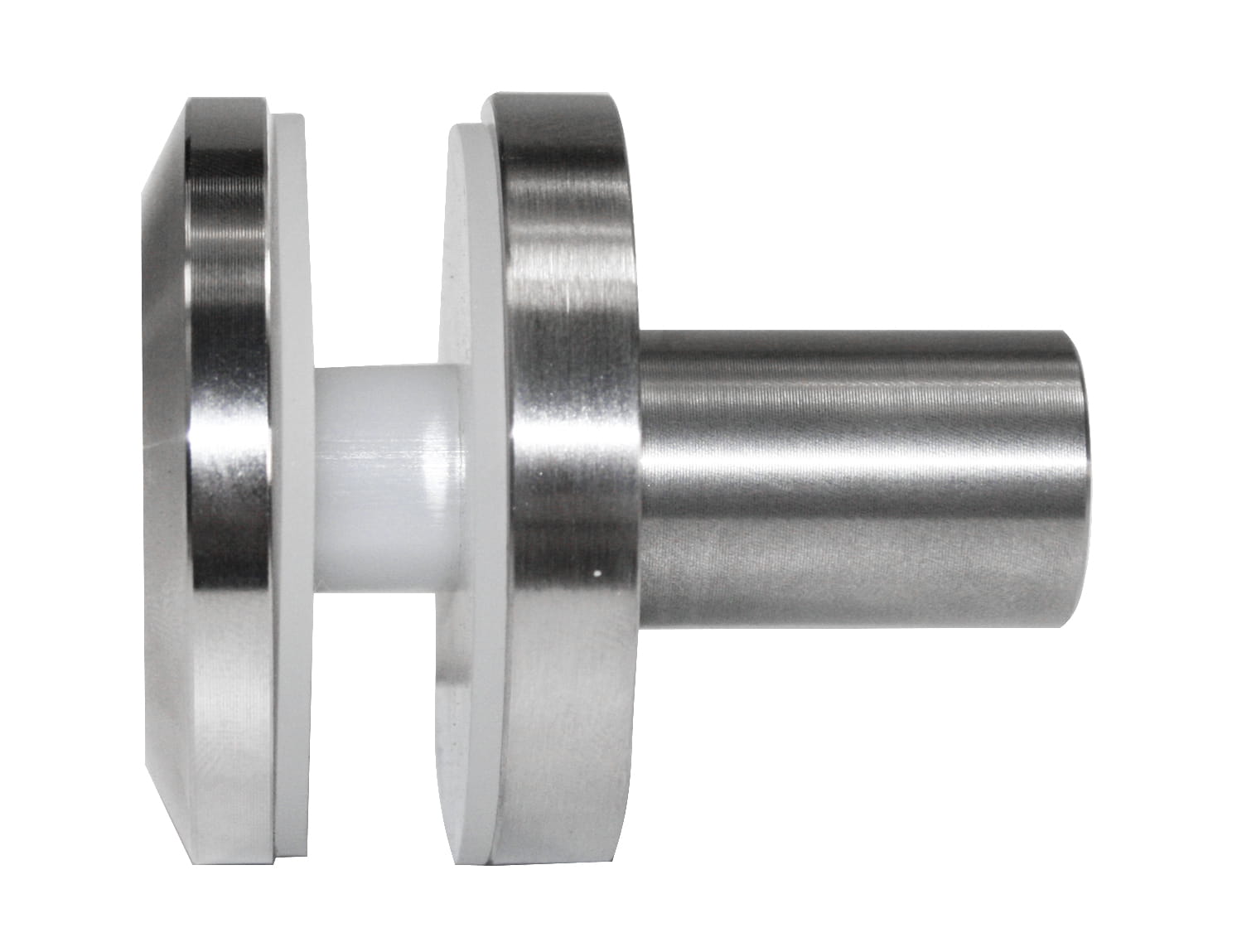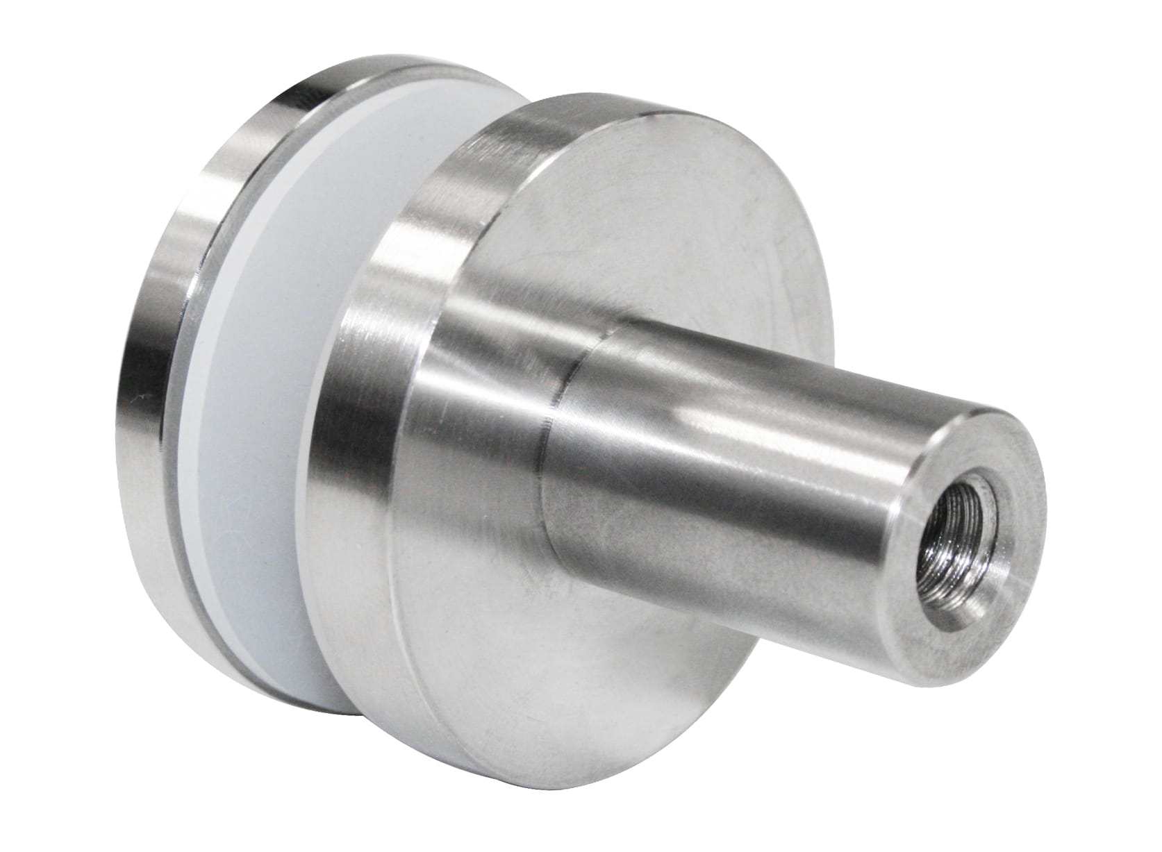 Adaptador de vidrio 50/8 mm rosca M10 con casquillo, AISI 304, SATINADO.