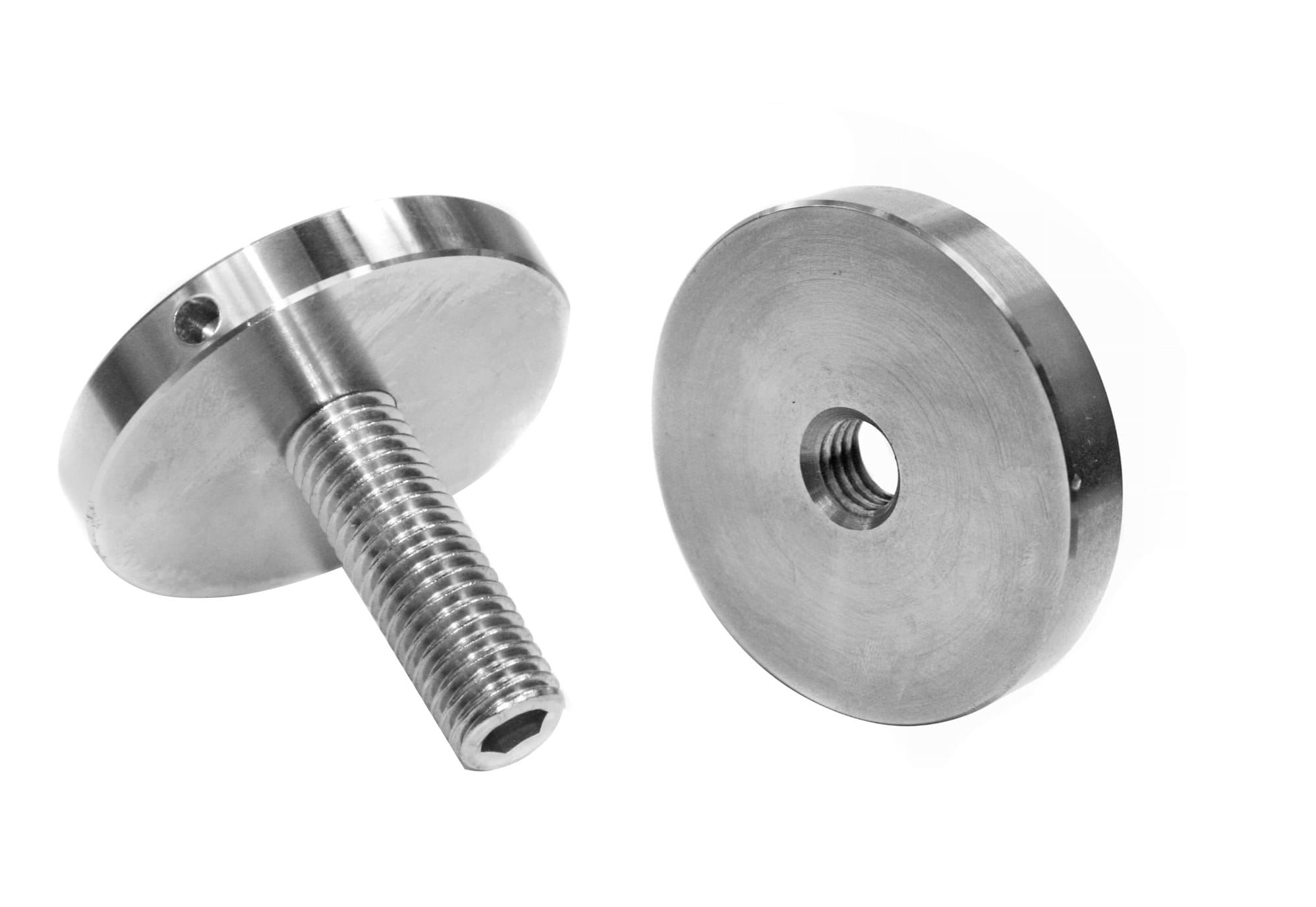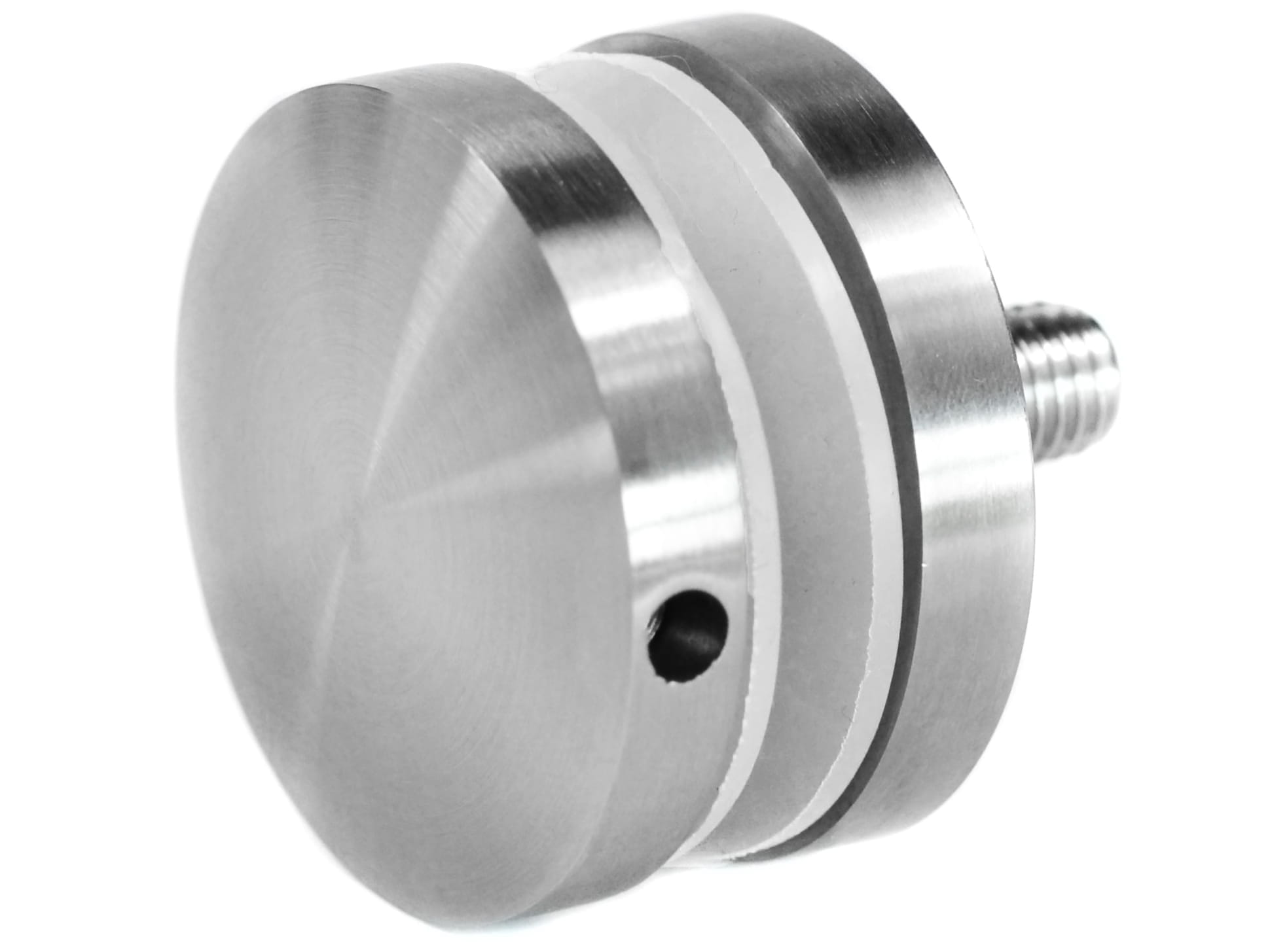 Adaptador de vidrio 50/8 mm rosca M12, AISI 304, SATINADO.