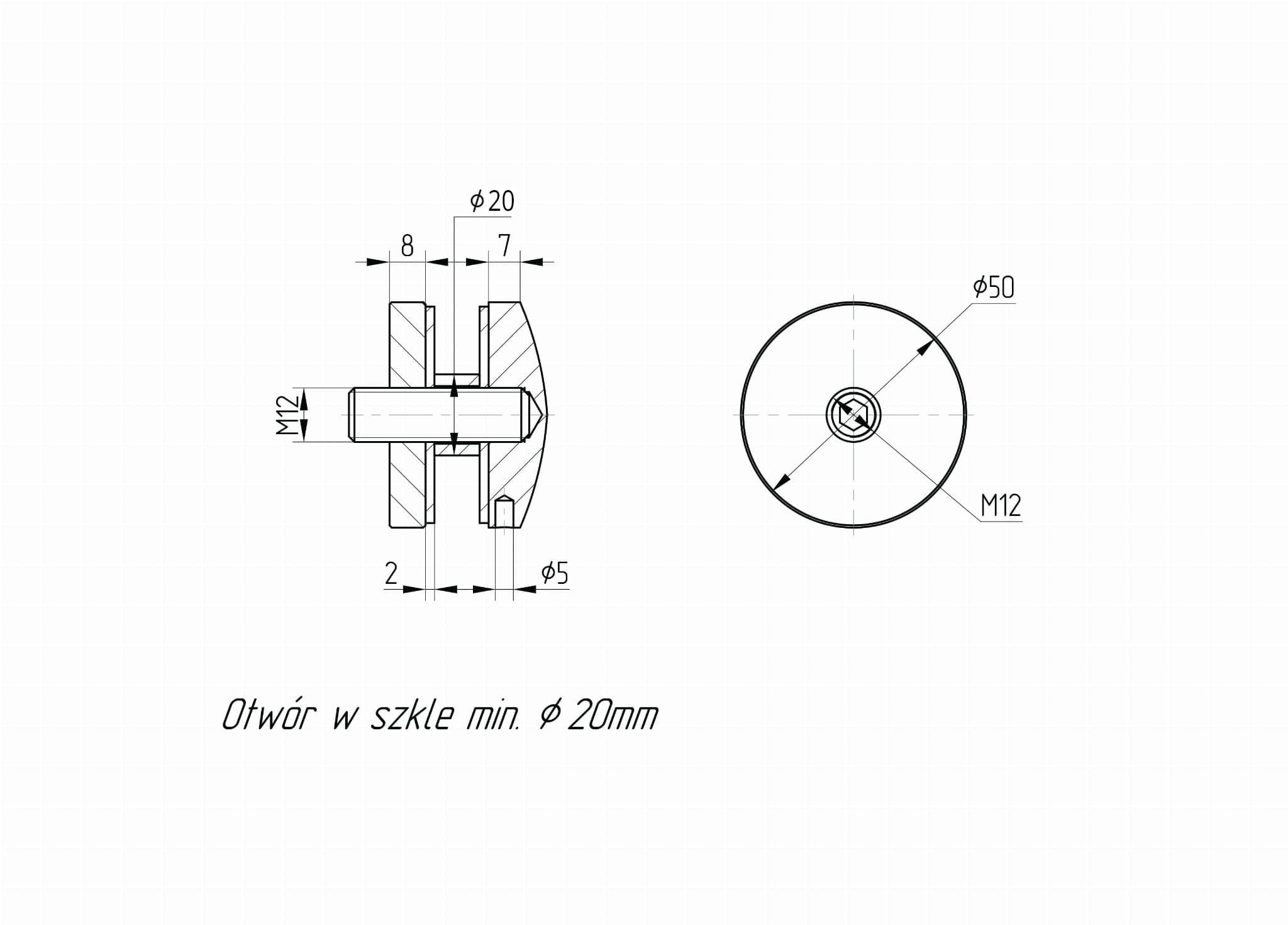 - Diámetro mínimo del orificio de montaje en el vidrio - Ø 20 mm