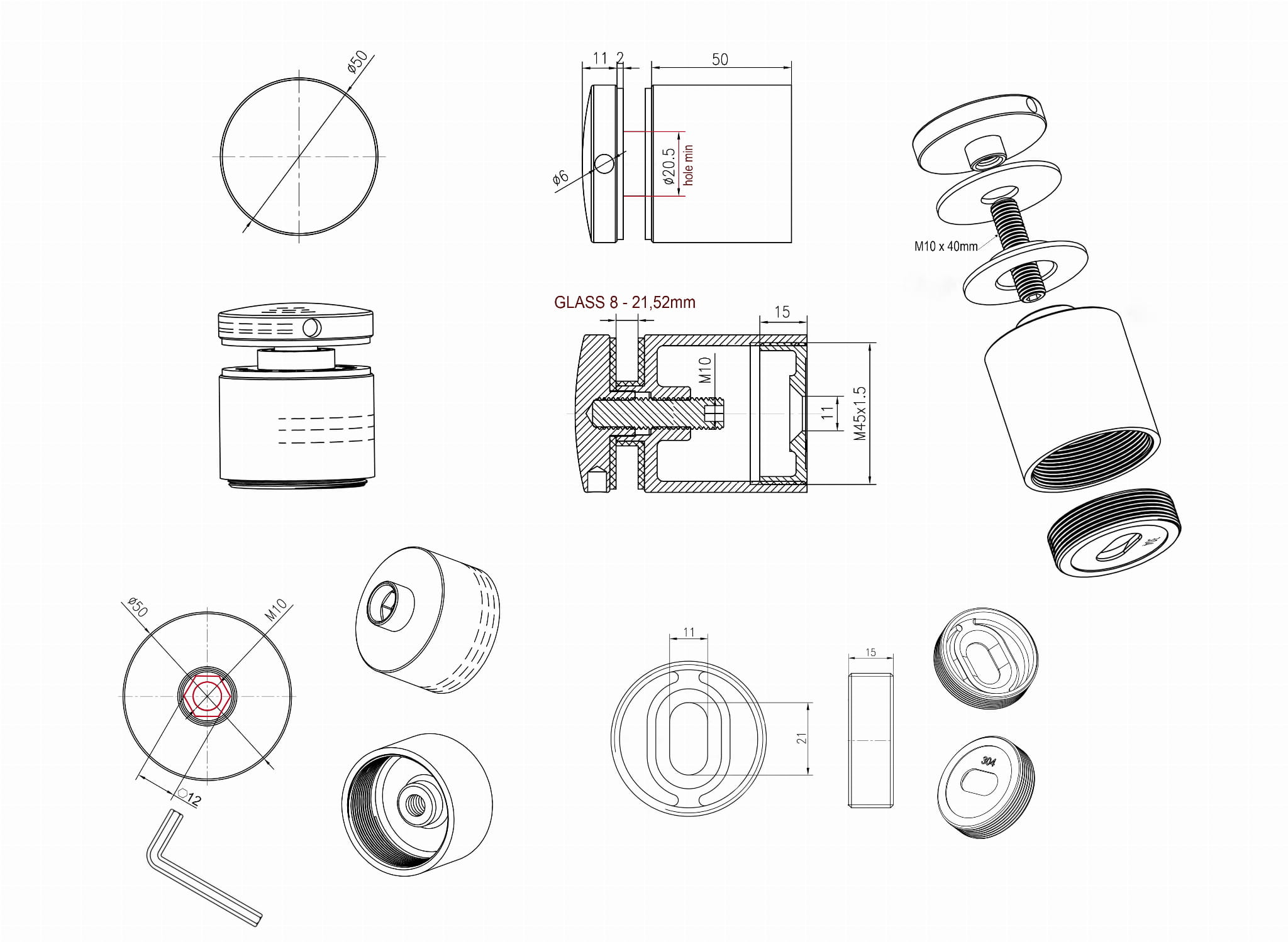 - El orificio mínimo de montaje en el vidrio - Ø 20 mm