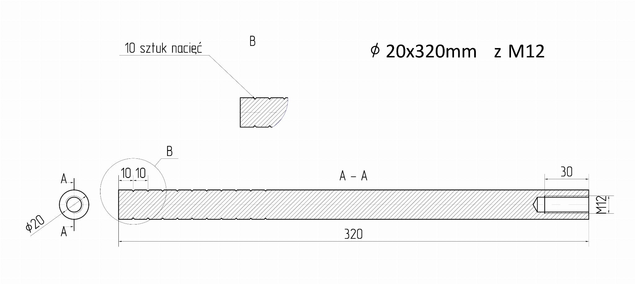 - Barra de montaje fi 20x320mm