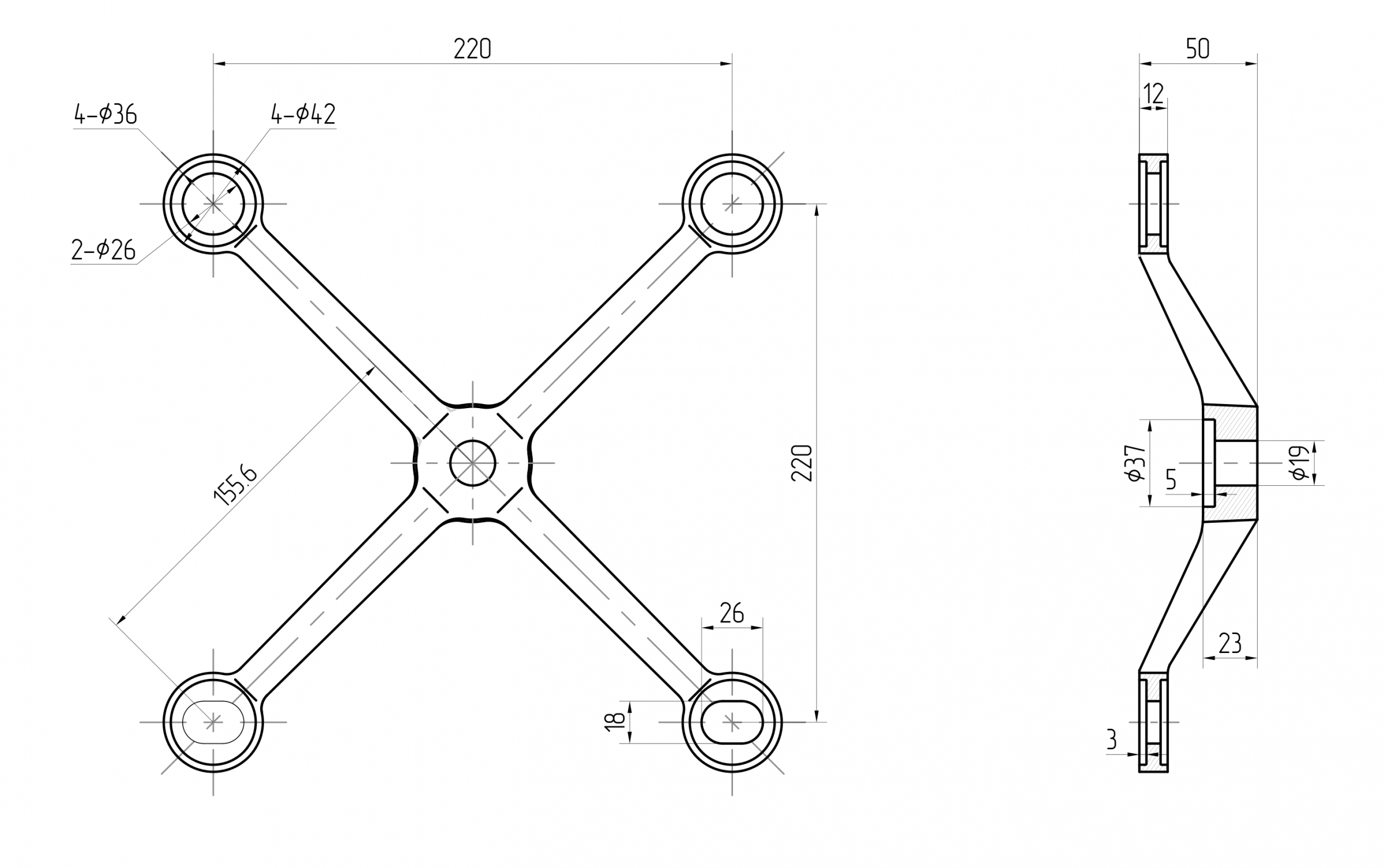 Araña LIGHT de cuatro vías, AISI 316, SATINADO