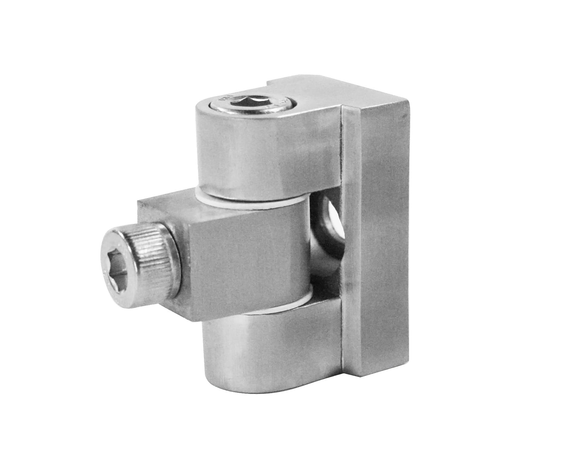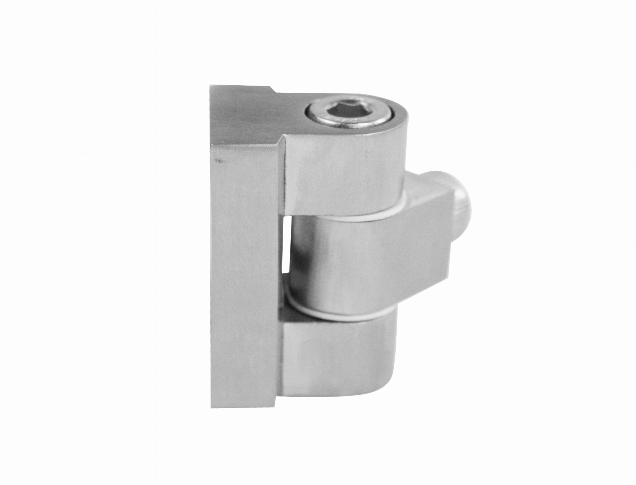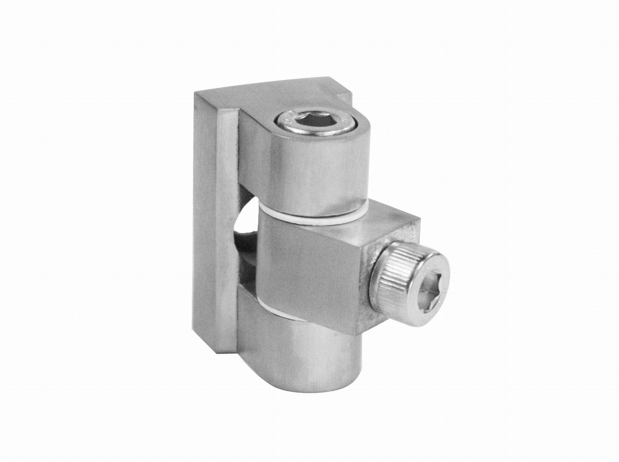 - Articulación (bisagra) para mordaza de vidrio diseñada para atornillarse a una superficie plana