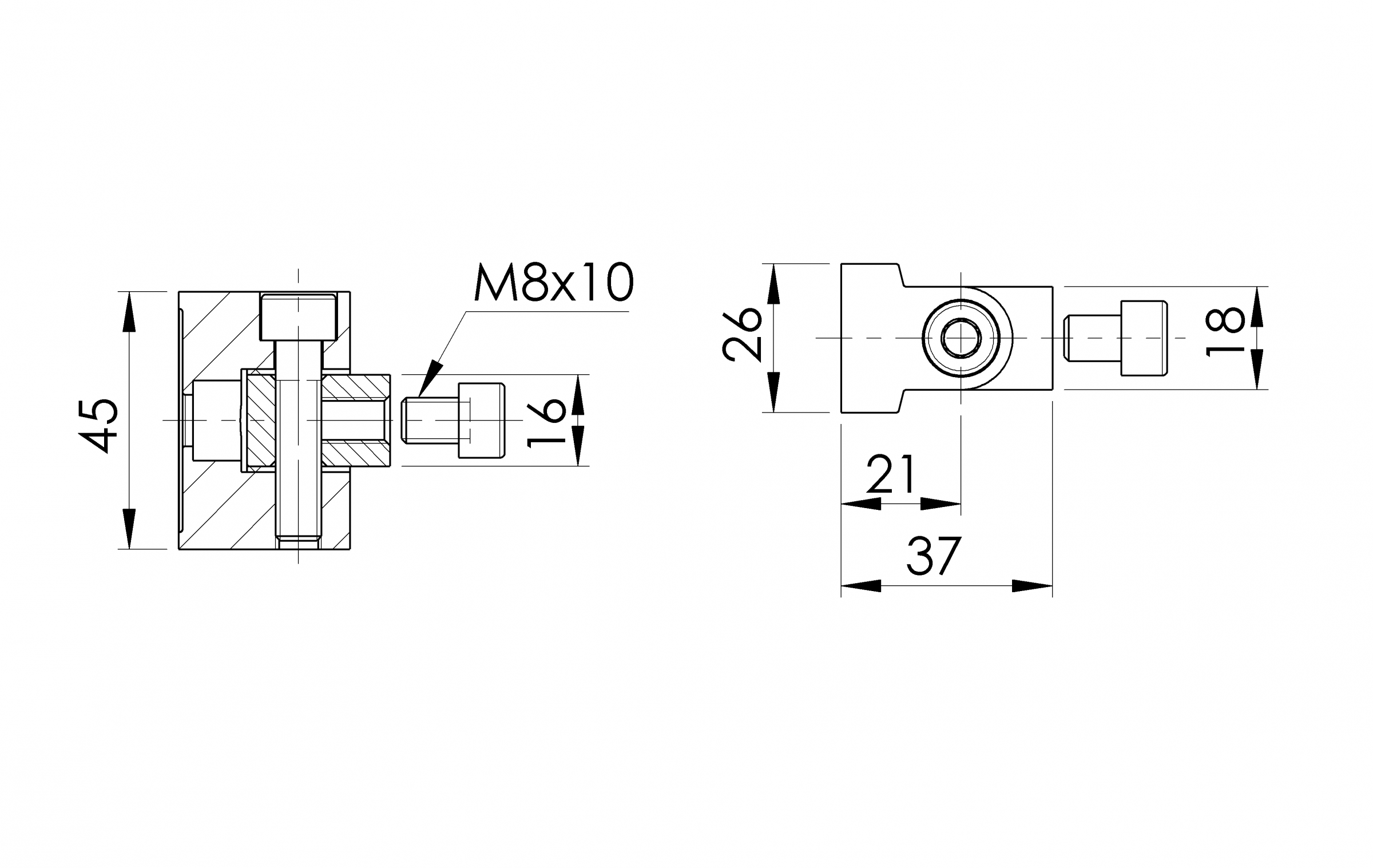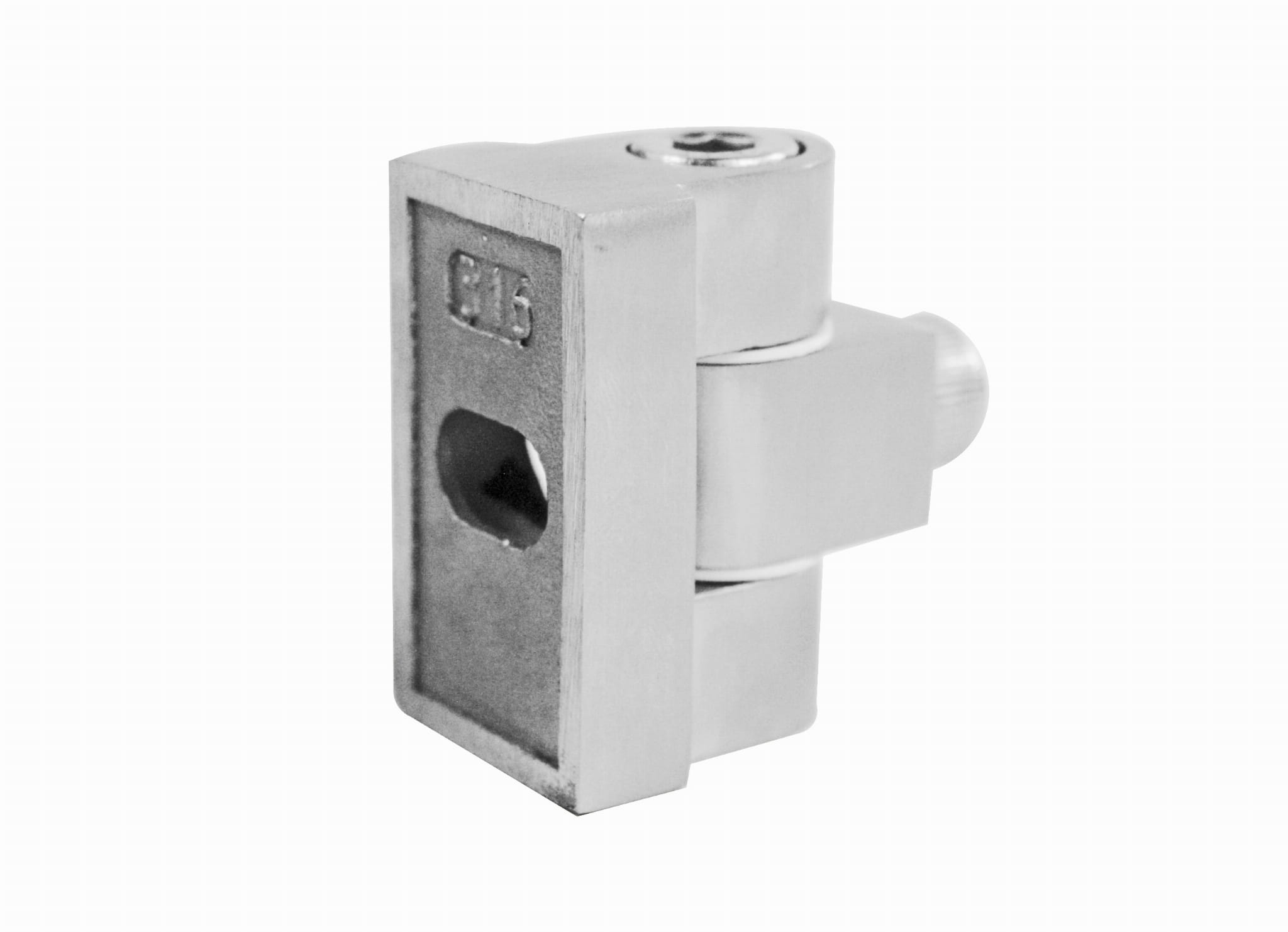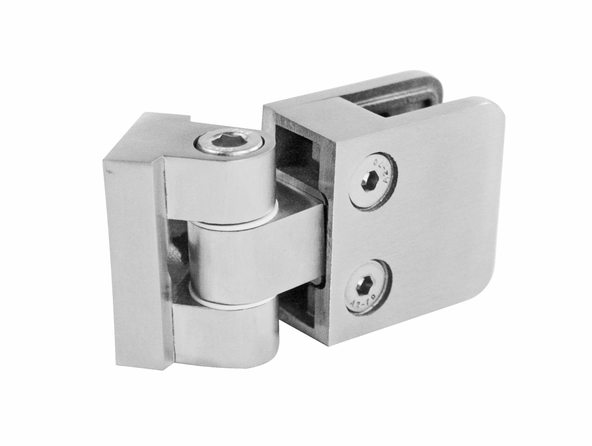 - Articulación (bisagra) para mordaza de vidrio diseñada para atornillarse a una superficie plana