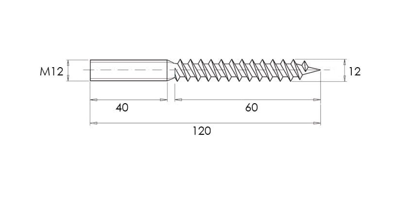 - Doble rosca de acero inoxidable - M12x120 mm