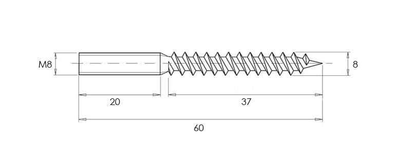 - Barra roscada doble de acero inoxidable - M8x60 mm