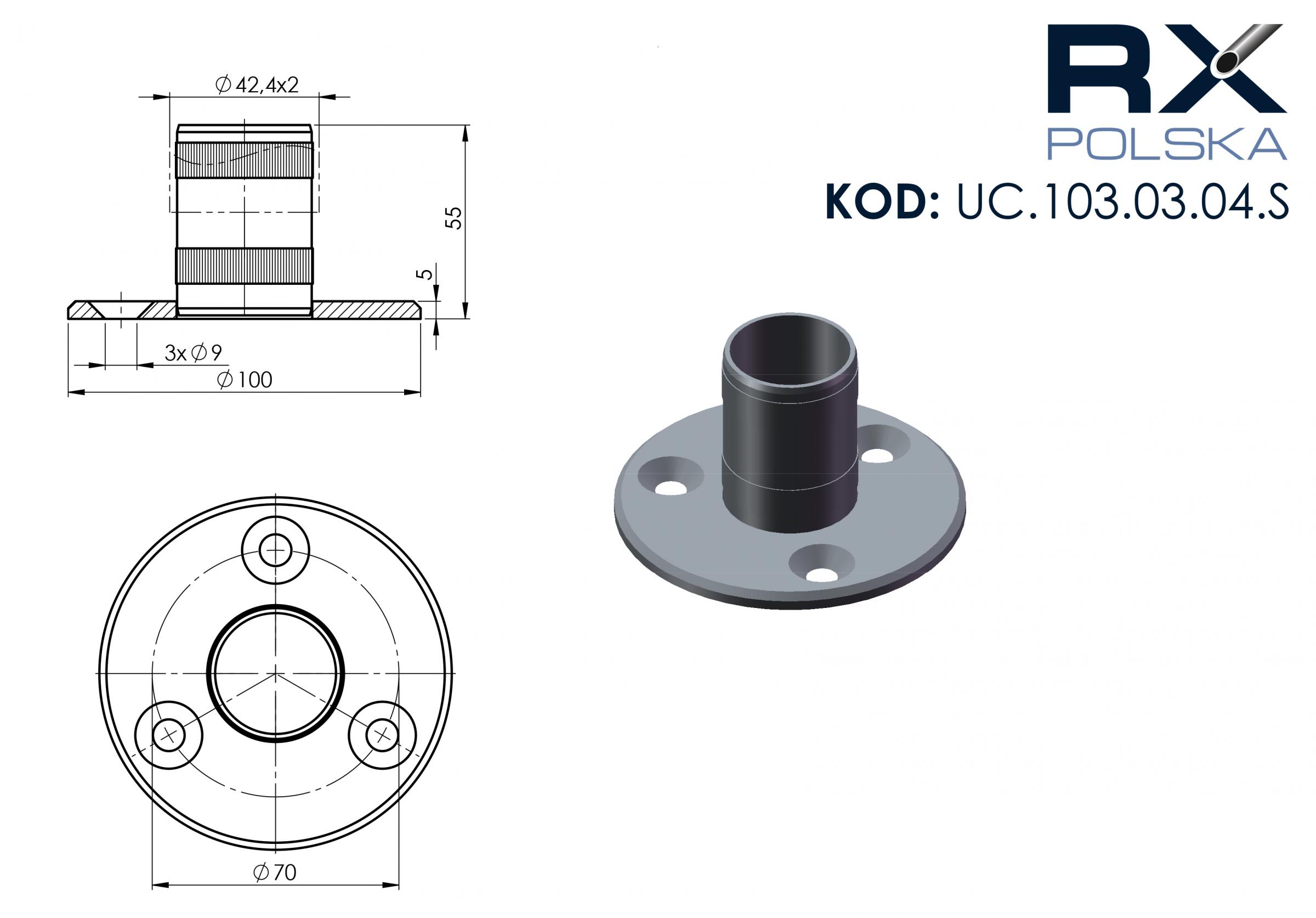 - Base para fijar a golpes en el tubo 42,4x2mm,
