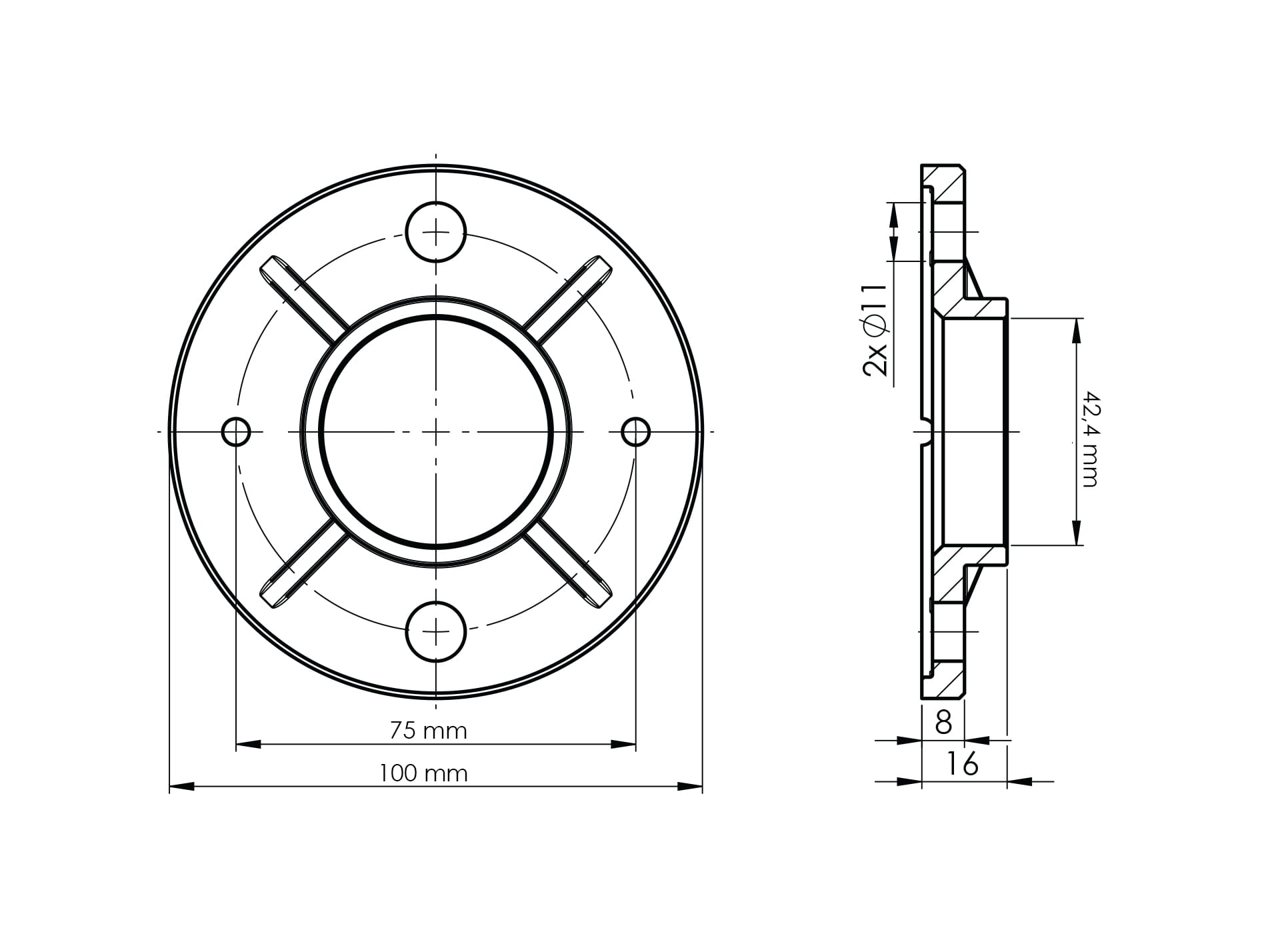 Base para soldar 42,4 mm, AISI 304, EN BRUTO