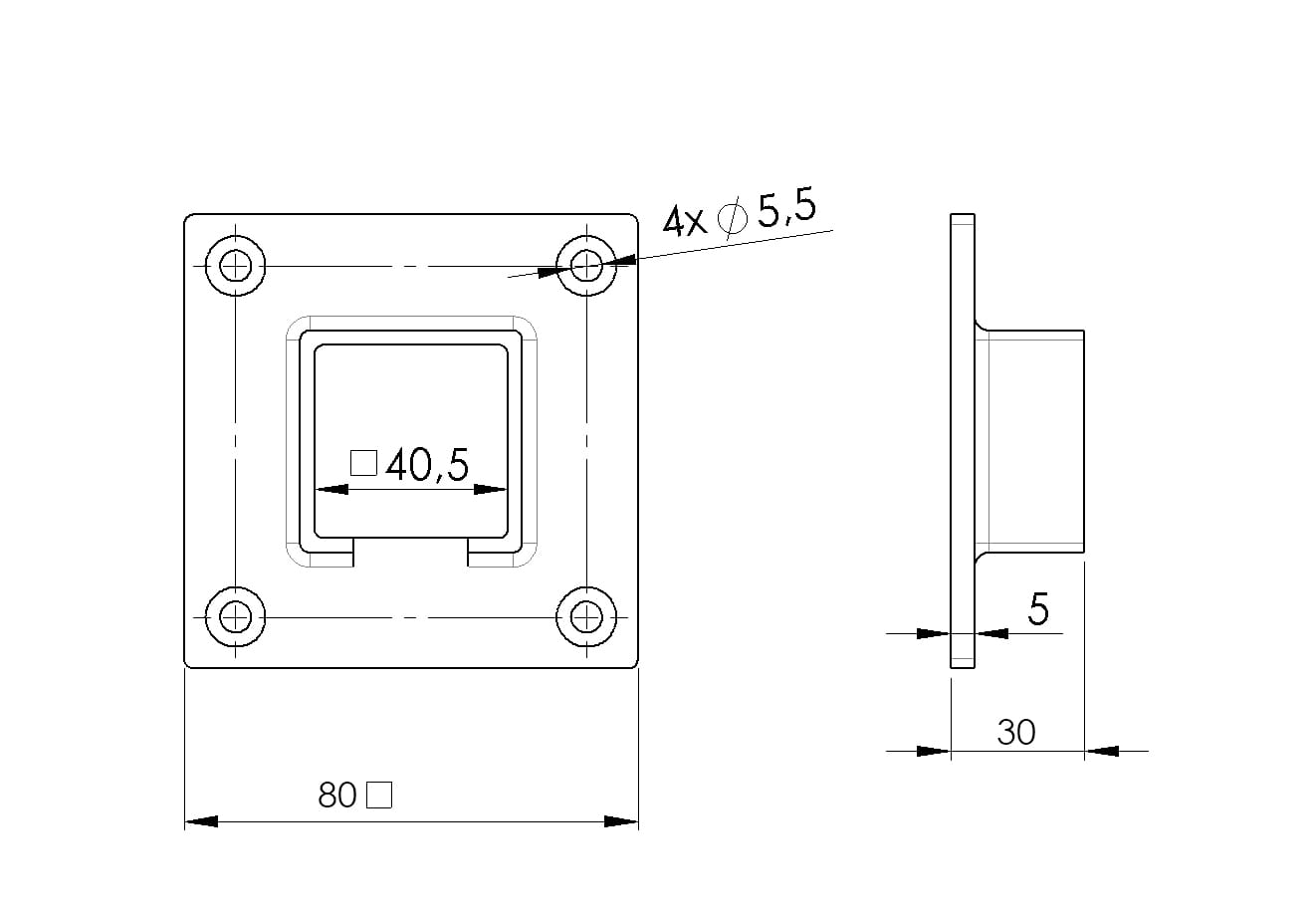 Brida de montaje - 40x40 mm, AISI 304, SATINADA