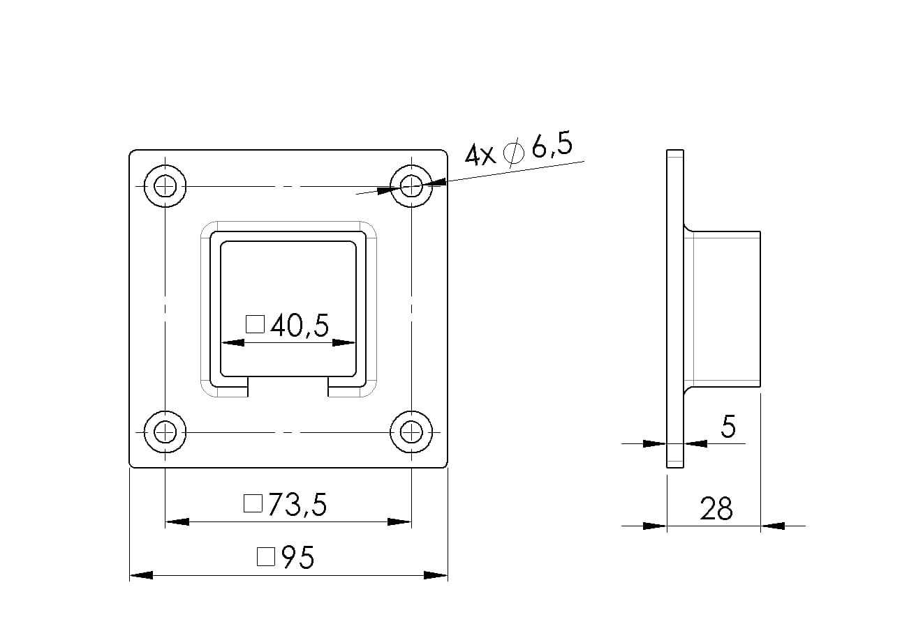 Brida de montaje - 40x40 mm, AISI 316, SATINADA
