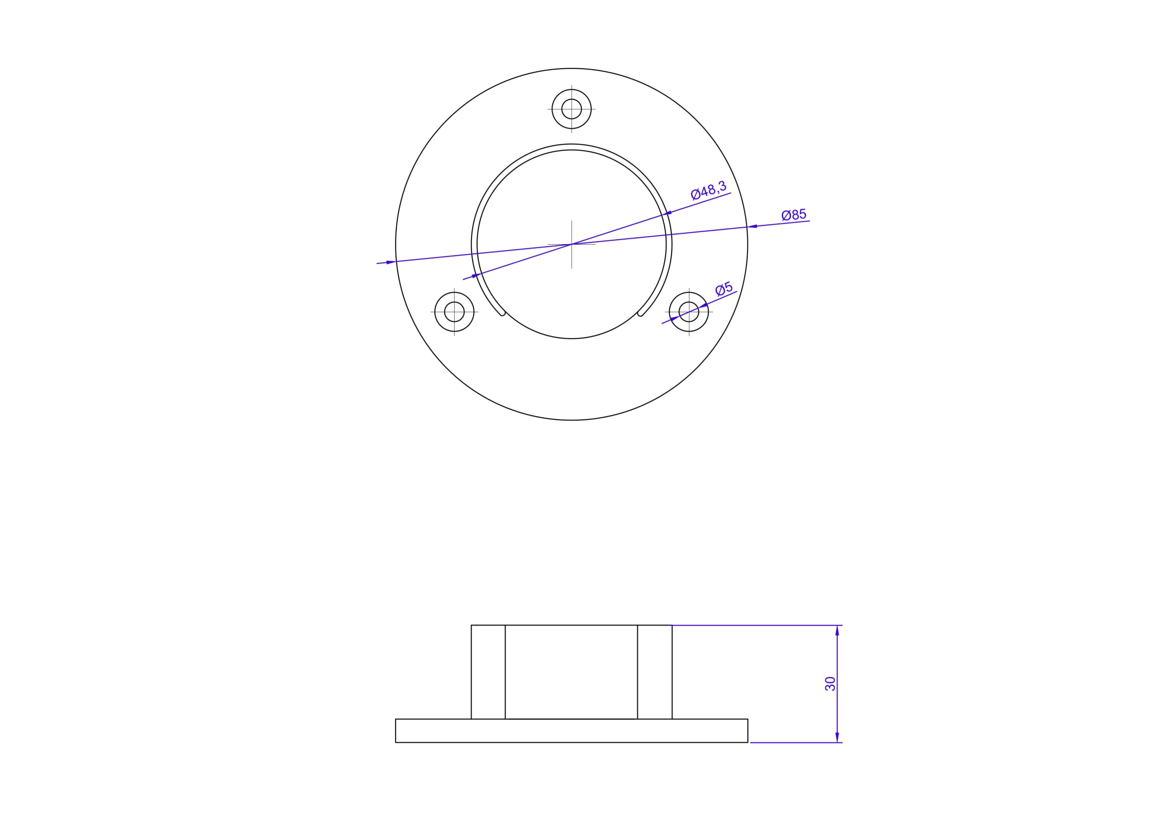 - Tres orificios de montaje para tornillos / tornillos cónicos Ø 5 mm