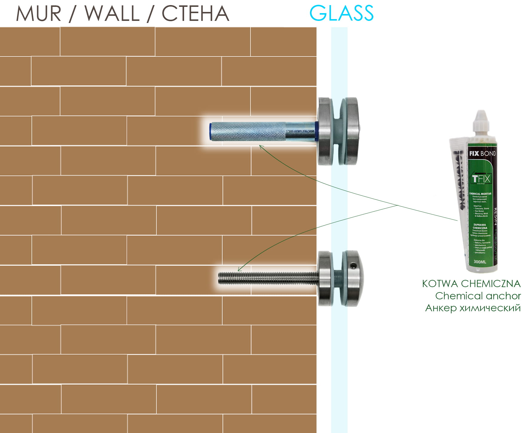 - Casquillo de anclaje para usar con anclaje químico