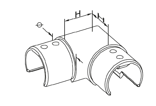 - Codo horizontal de 90° del pasamanos aplicado al vidrio fi 48,3x1,5mm