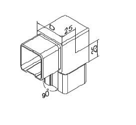 Codo agudo pegado en el perfil 40x40x2 mm, AISI 304, SATINADO