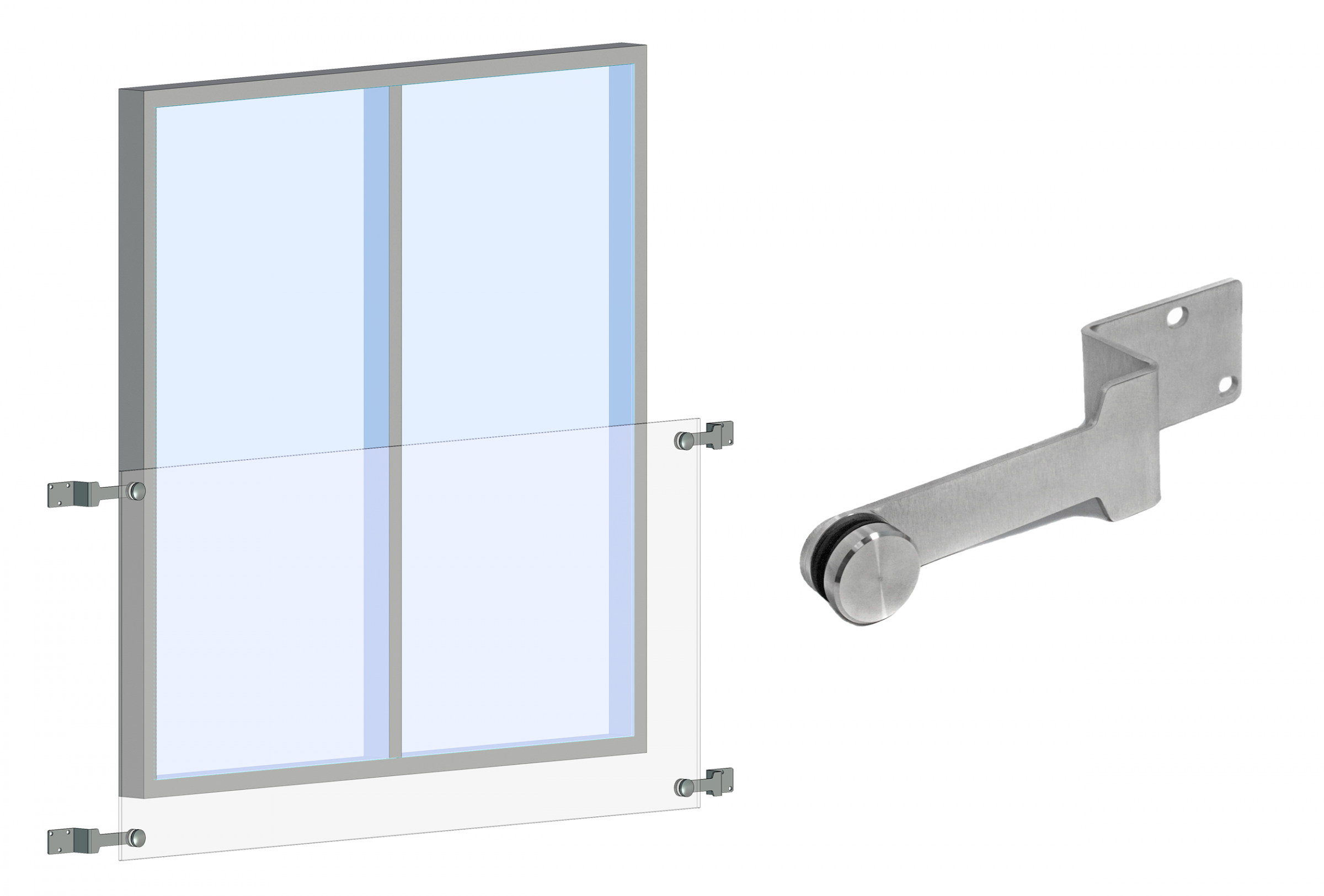 - Escuadra con adaptador para vidrio fi40 mm, AISI 304, SATINADO