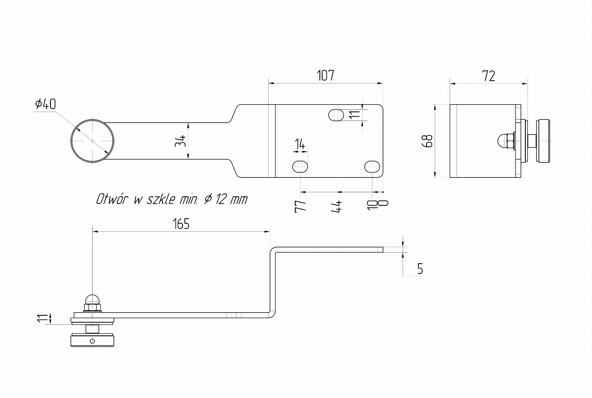 • Orificio mínimo de montaje en el vidrio: Ø 12 mm