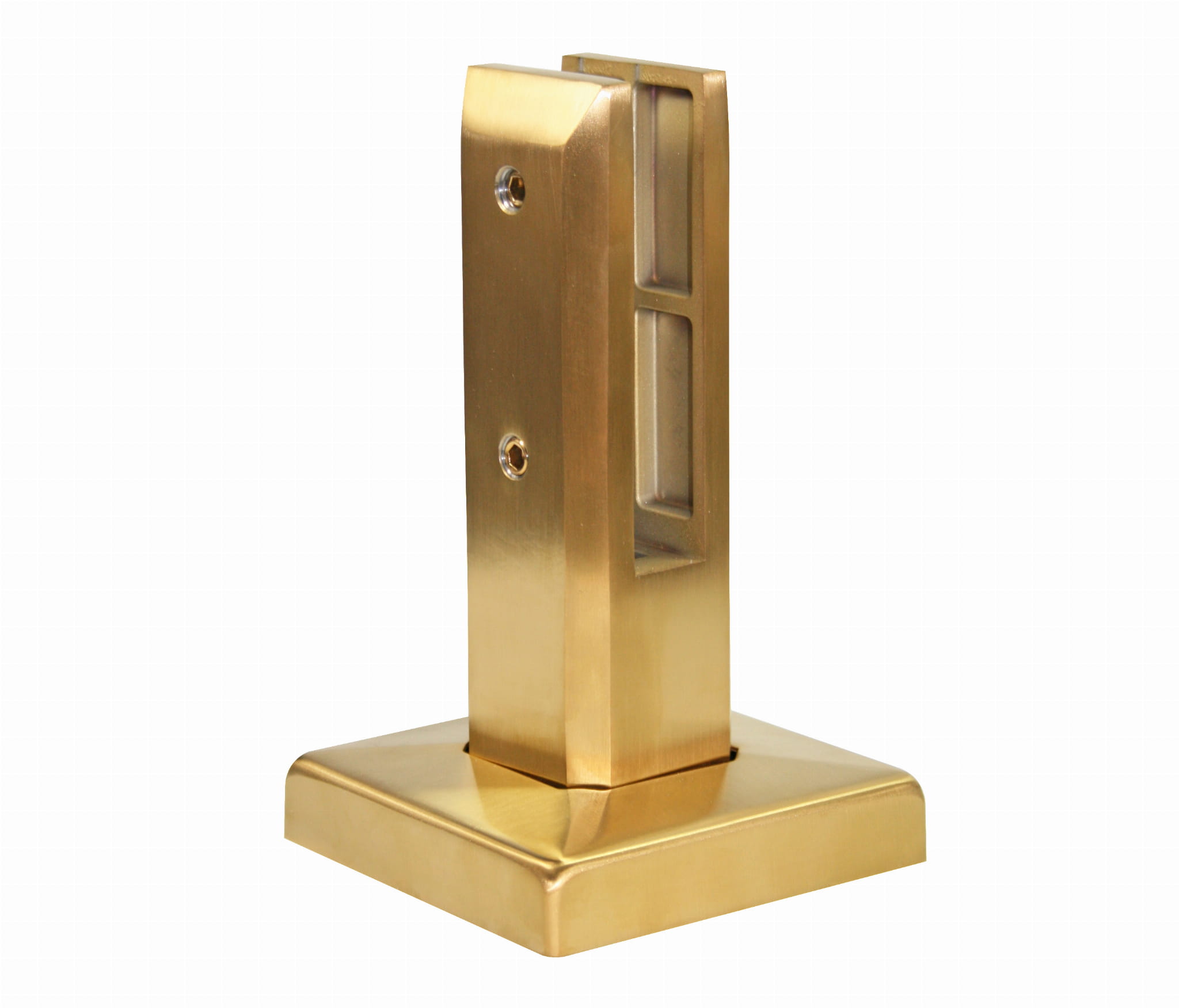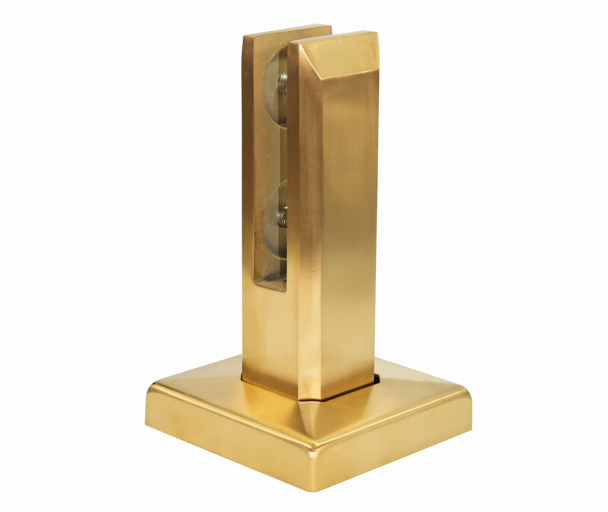Espiga 50x50 mm H=182 mm, vidrio 12-17,52 mm, AISI 304, SATINADO DORADO