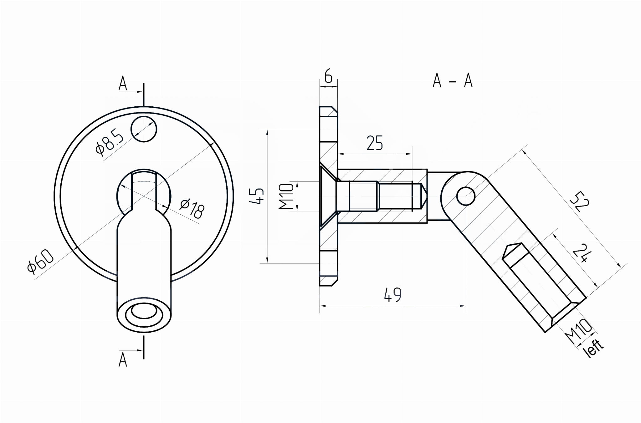 • Elementos de fijación a la superficie de montaje sobre disco Ø60 mm con dos orificios Ø8,5 mm