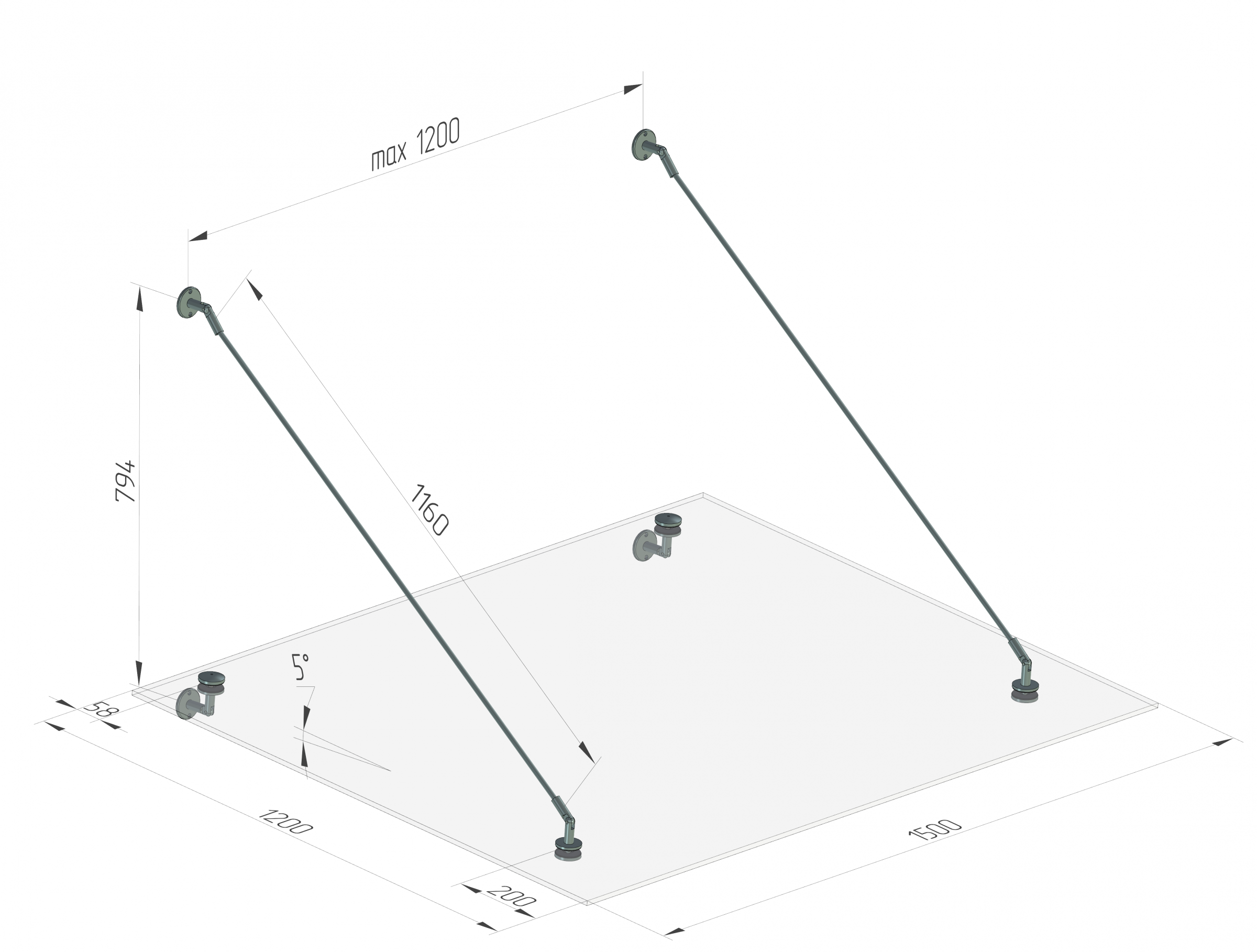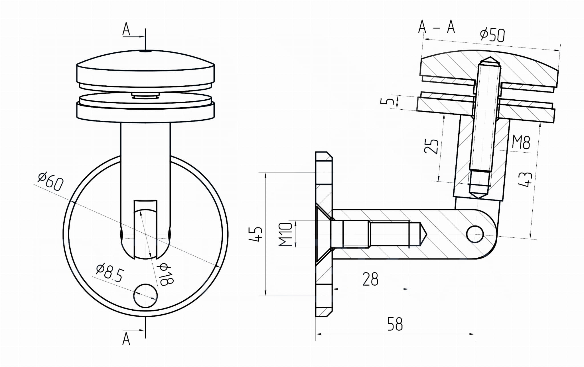 Fijación de marquesina CN SIMPLE Ø 50 mm, AISI 304, SATINADO