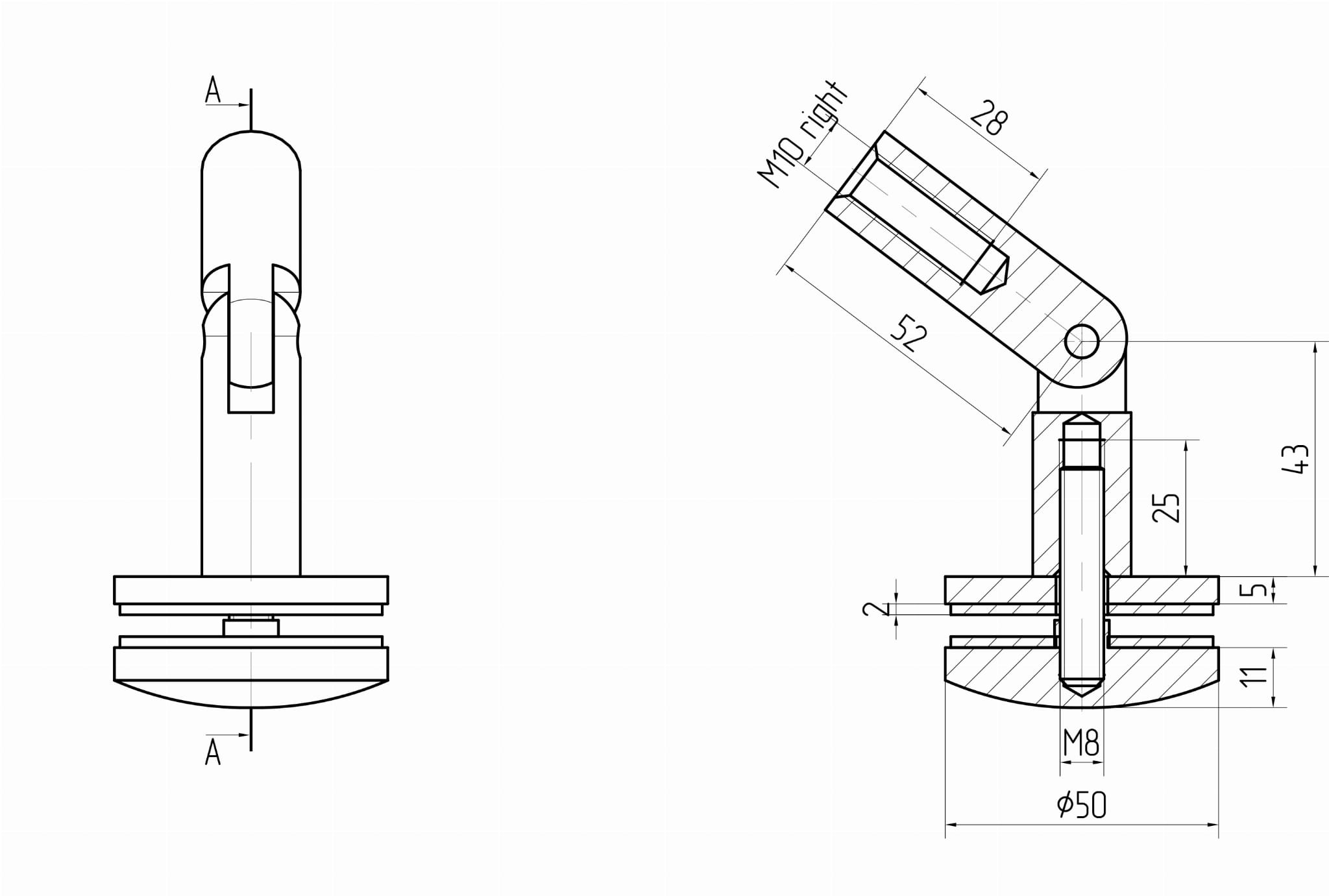 Fijación de marquesina CN SIMPLE - A Ø 50 mm, AISI 316, SATINADO