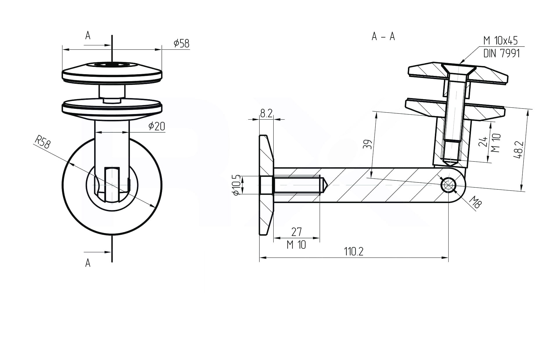 • Soportes de fijación para vidrio - soporte puntual Ø 58 mm