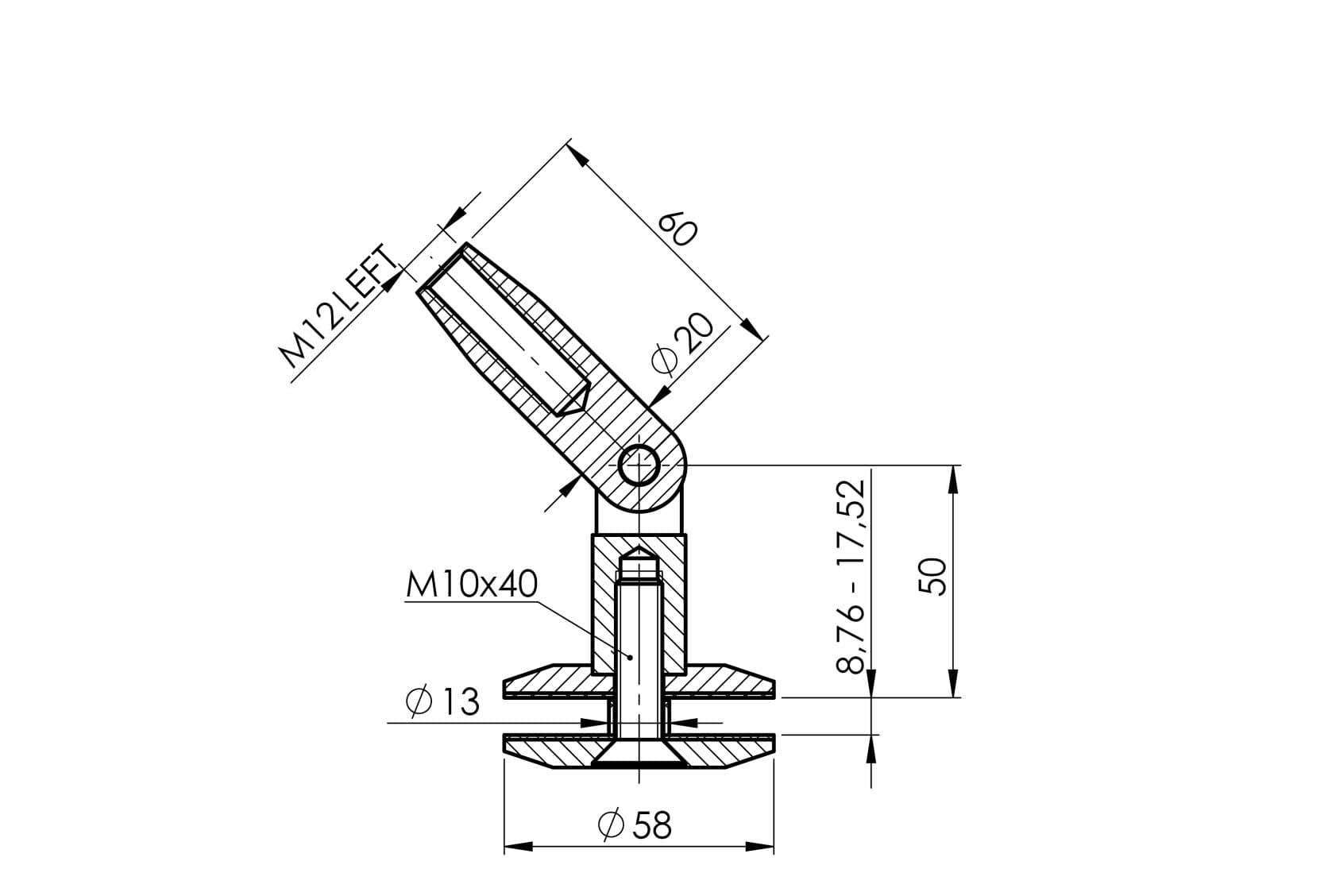 • El tensor está hecho de una varilla Ø 12 mm con roscas en los extremos M12 derecha / M12 izquierda