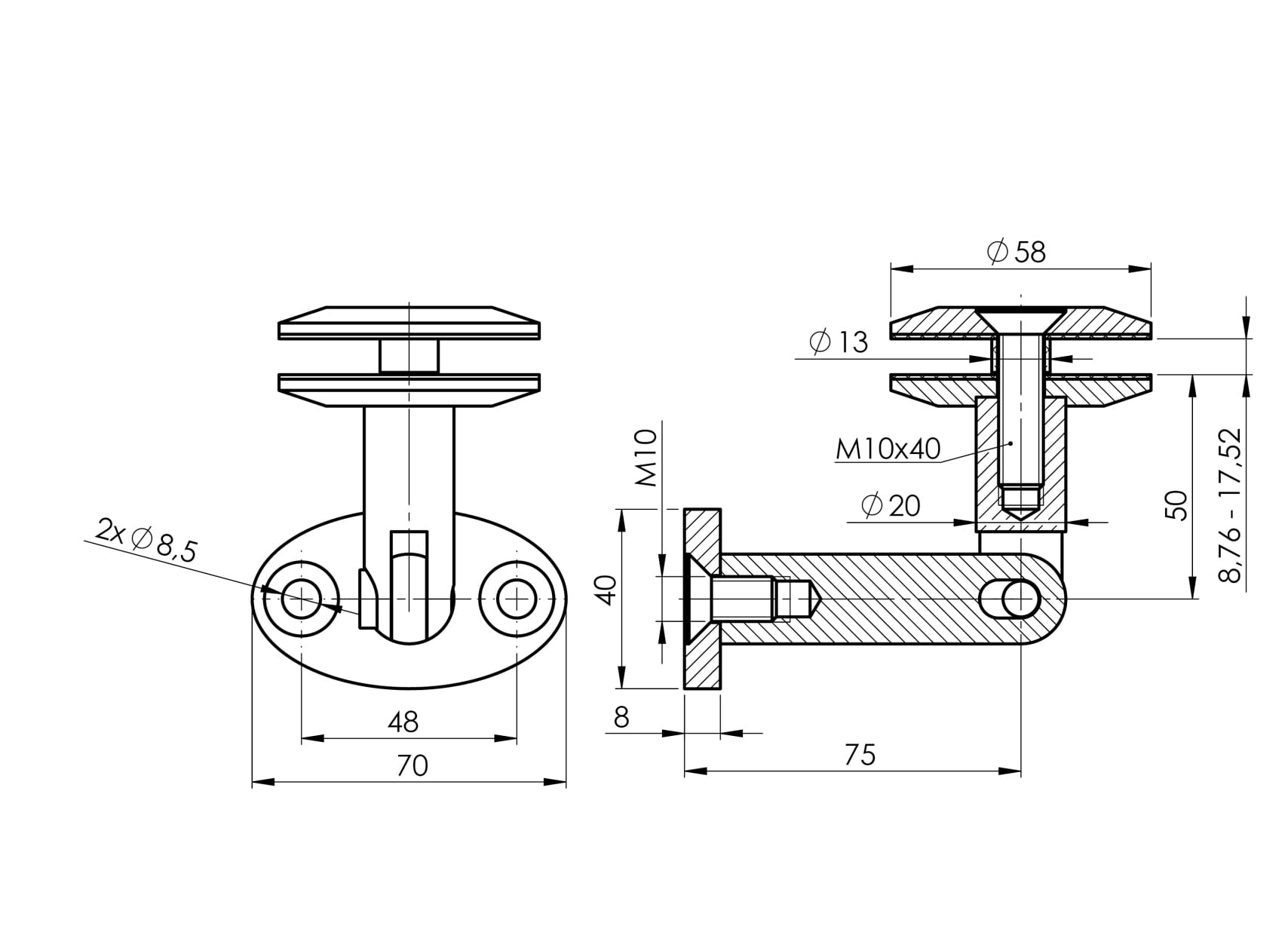 • Soportes de fijación para vidrio - soporte puntual Ø 58 mm