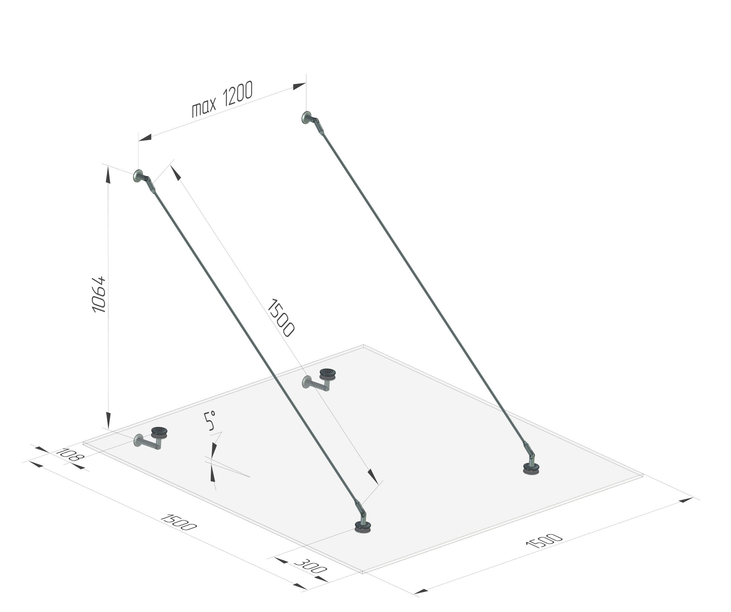 • Distancia máxima entre los tirantes: 1200 mm