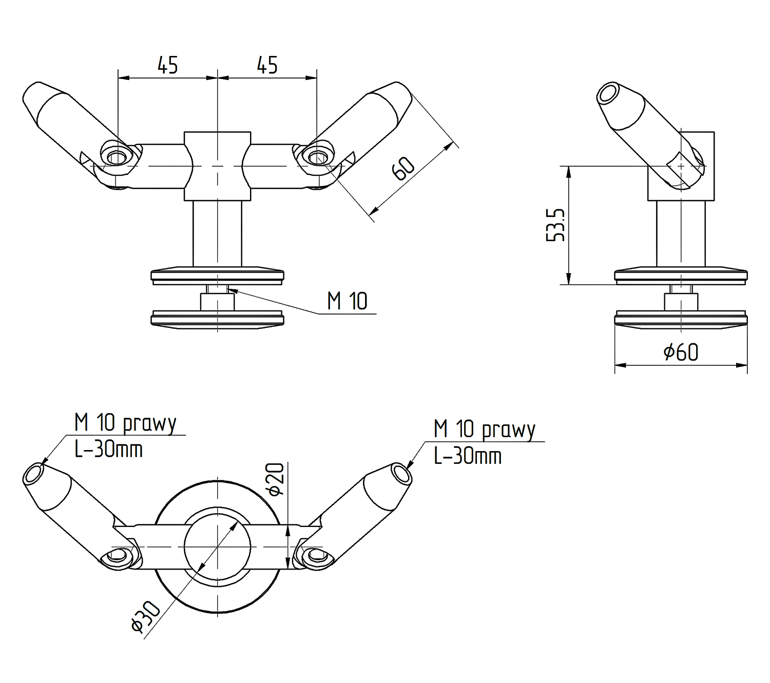 Fijación de marquesina CNP SIMPLE-V Ø 60 mm, AISI 304, SATINADO