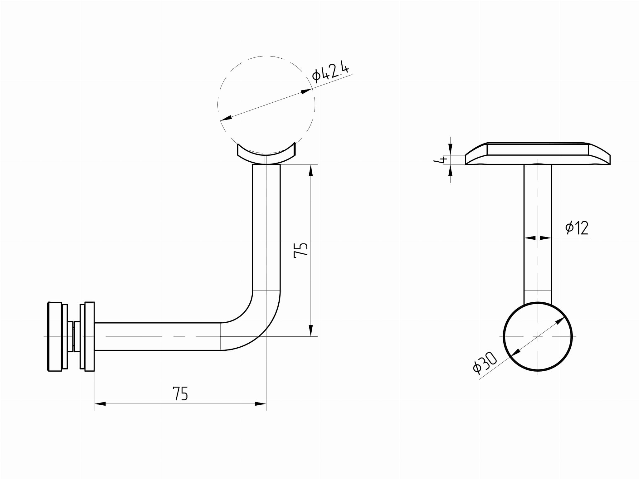 - Distancia del vidrio al eje de la placa de montaje del pasamanos en horizontal - 81 mm