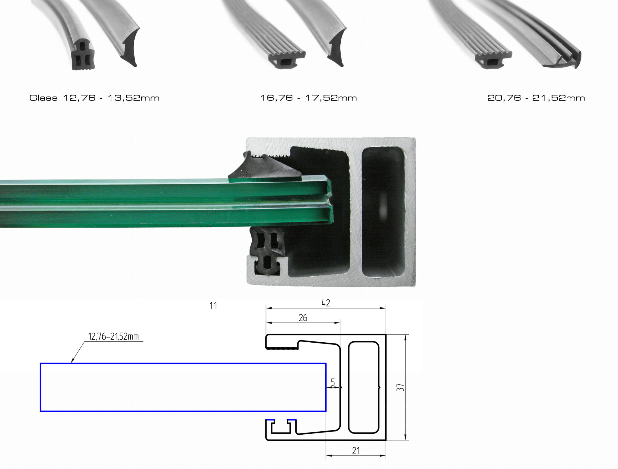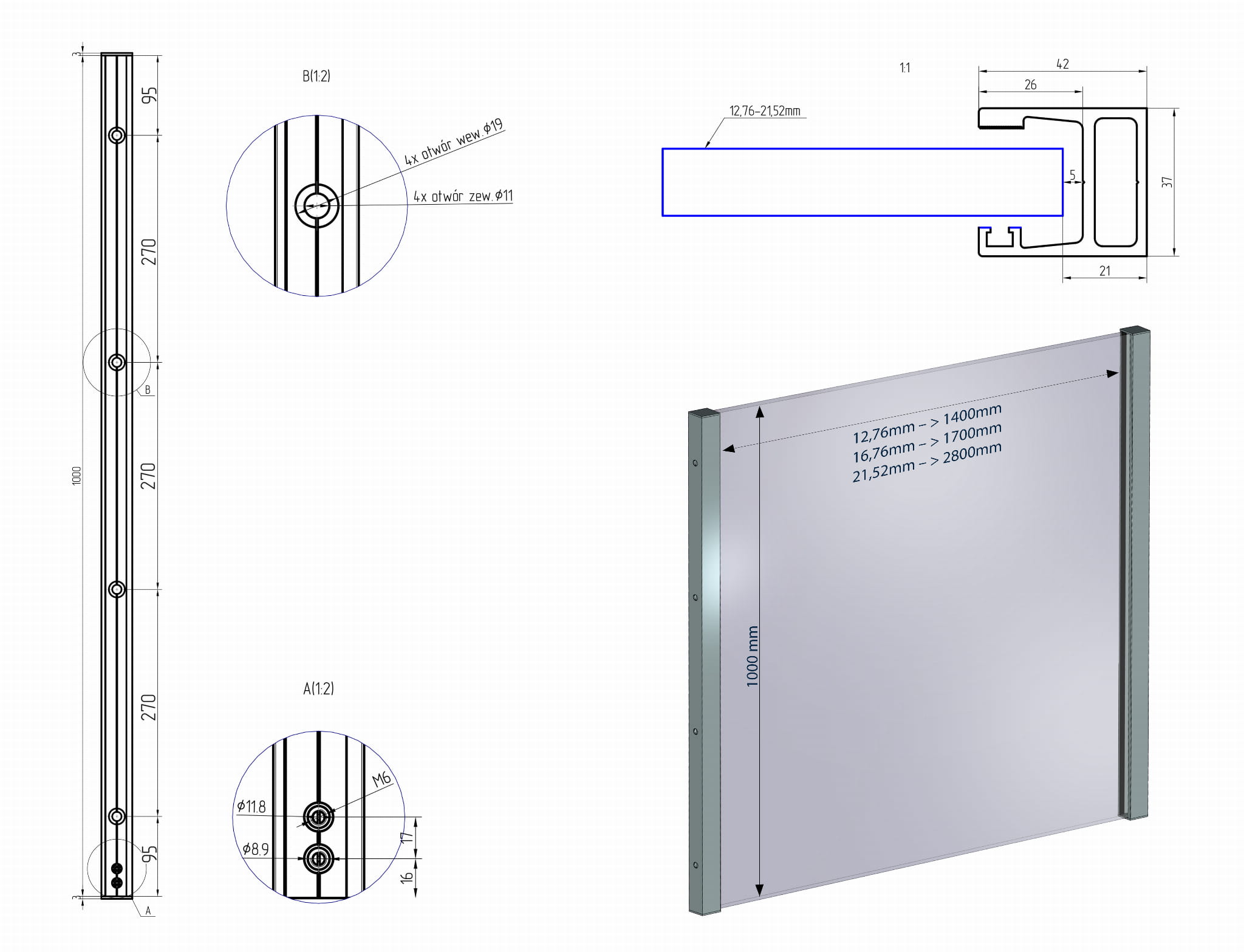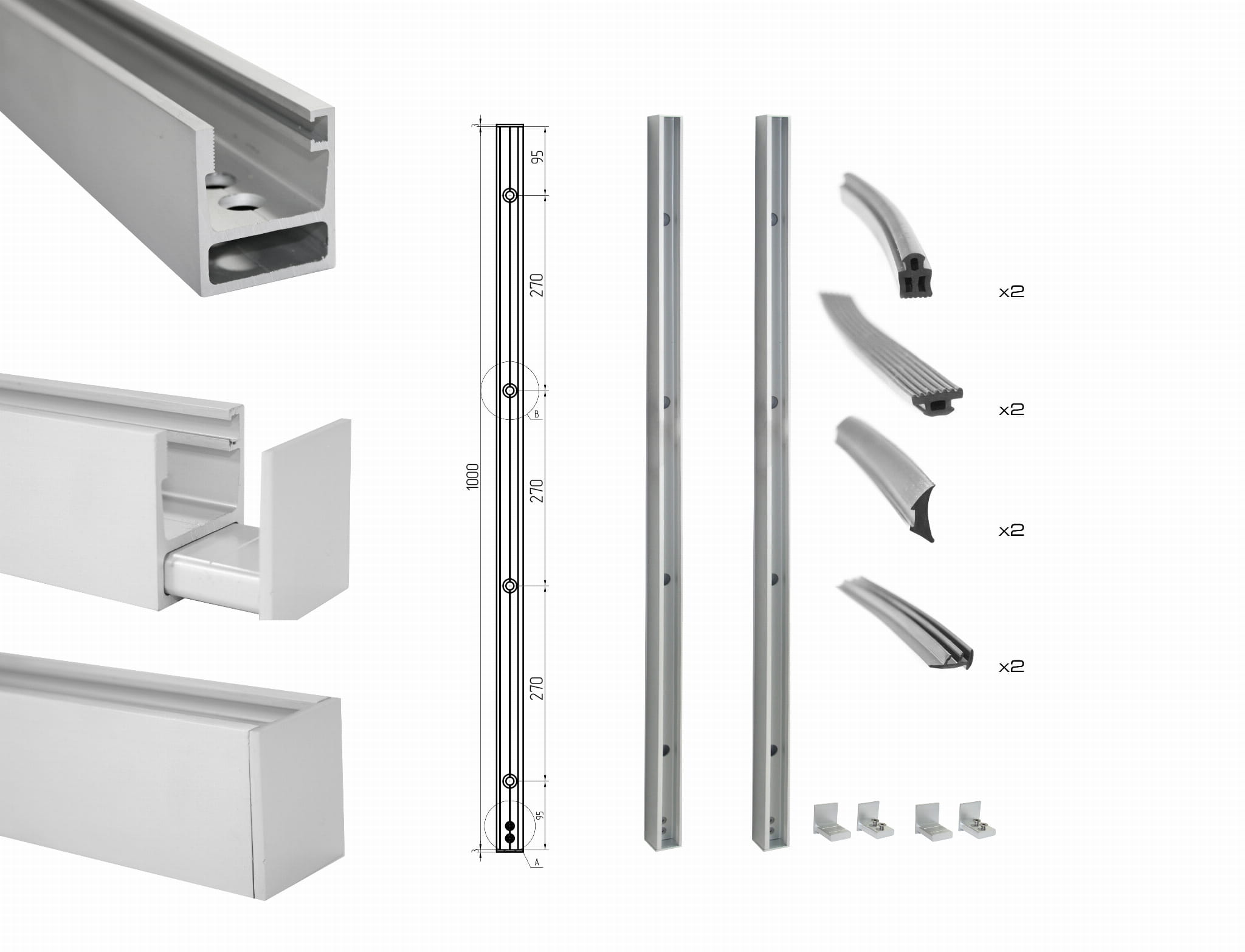 2x perfiles principales, dimensiones 37x42mm L=1000mm (el perfil incluye orificios de montaje)
