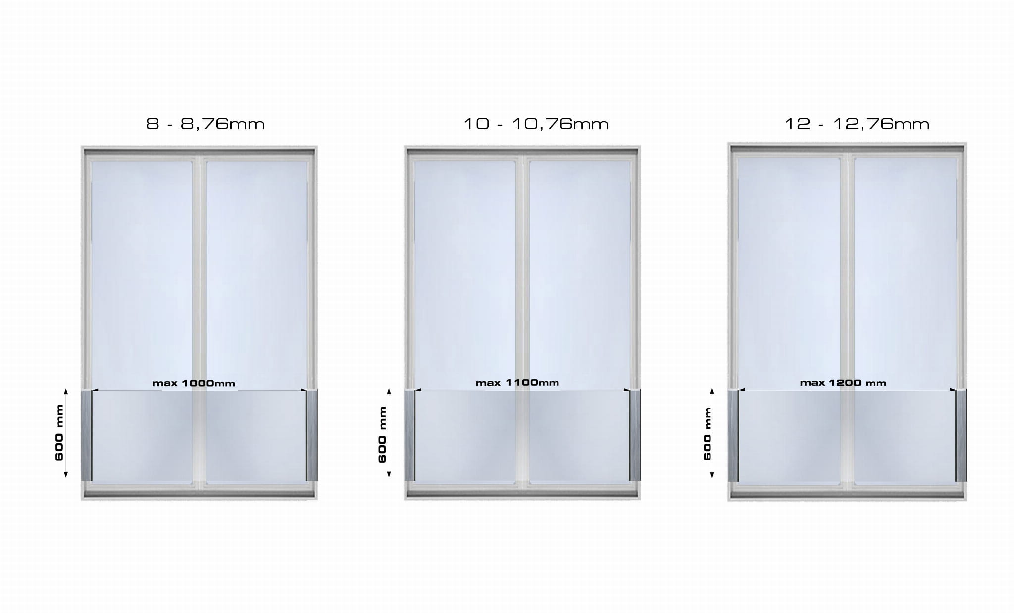 - Altura máxima del vidrio: 600 mm