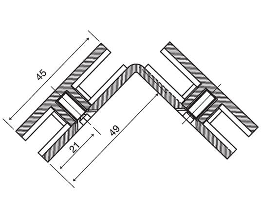 - Sujeción de dos láminas de vidrio en un ángulo de 90 °