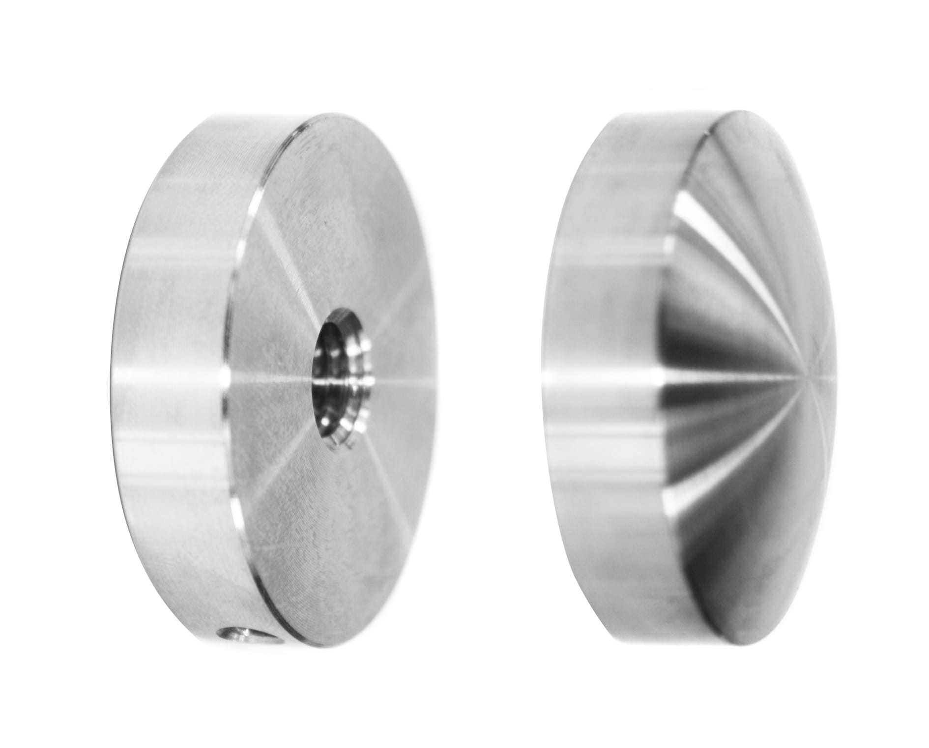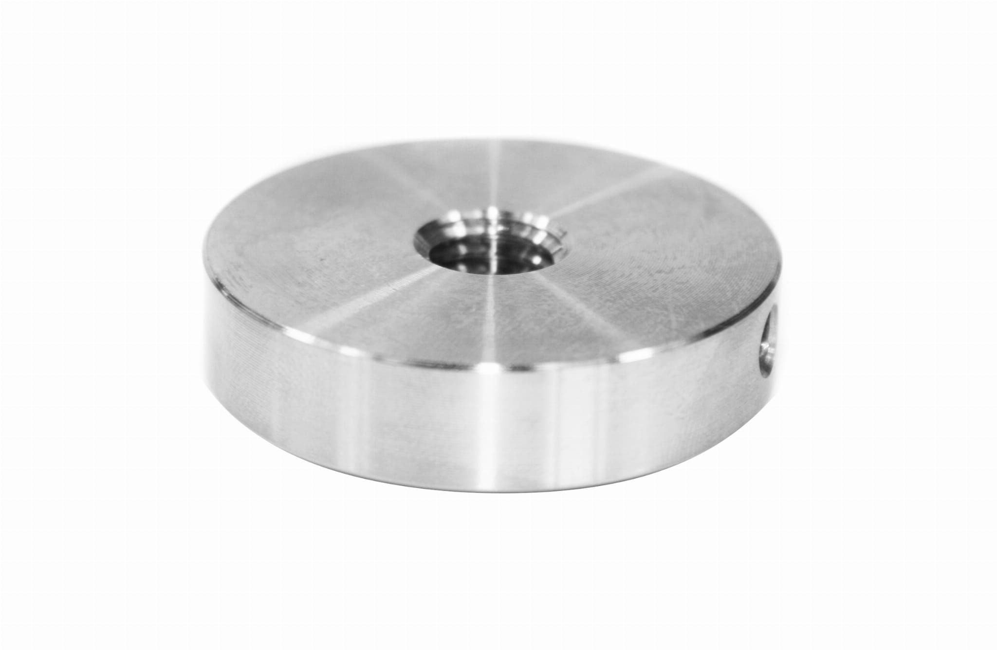 Parte frontal de la manilla, diámetro 40 mm, con rosca M8. Plana en el lado del vidrio y con casquillo en el interior.