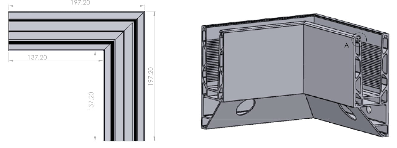- Perfil angular interior de aluminio: se monta lateralmente con orificios de fijación desfasados en sentido vertical