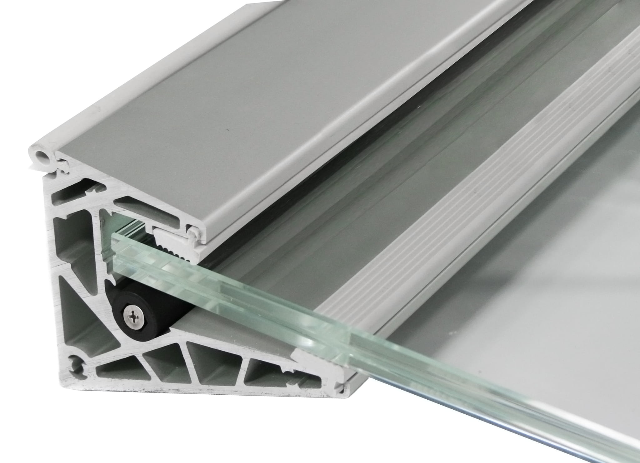 Es posible insertar LEDs entre el perfil y el vidrio. Recomendamos el uso de un LED ultrafino de alto brillo con un valor mínimo IP65 (clase 6 contra el polvo, clase 5 contra chorros de agua).