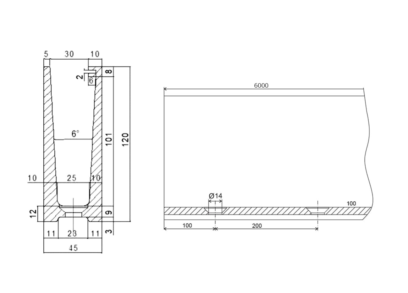 Perfil de aluminio para vidrio - fijación desde arriba / 6 m