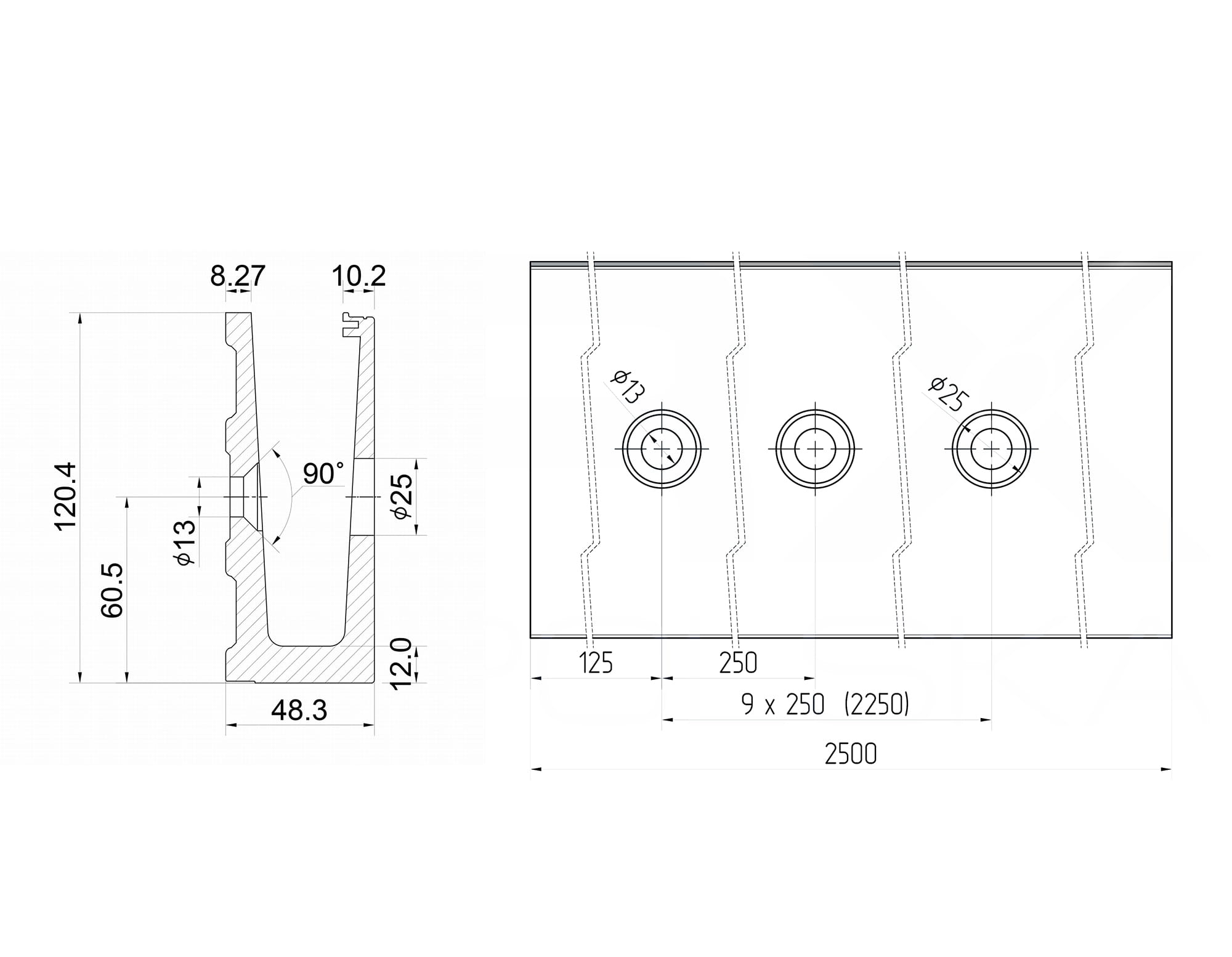 - Perfil con sección de 120x48mm