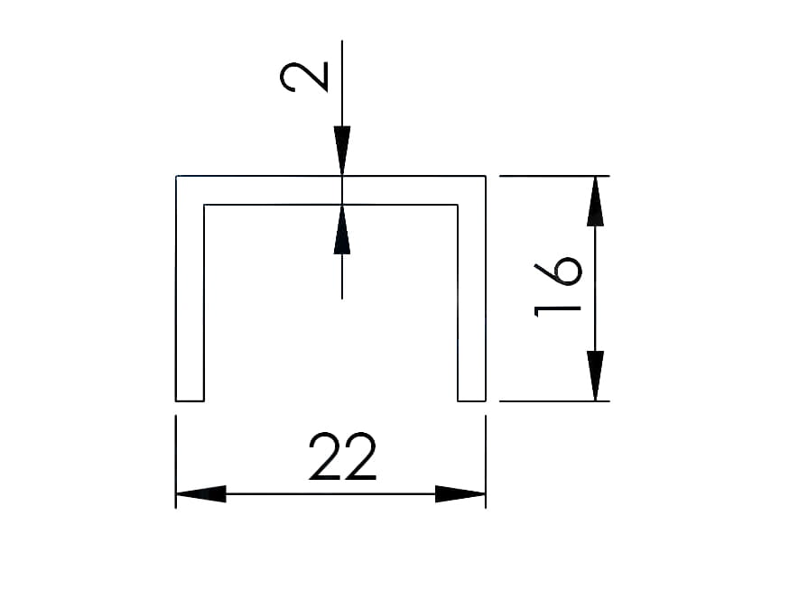 - Perfil en U para vidrio de 17,52 mm, Satin-ELOX, AL / 6 m