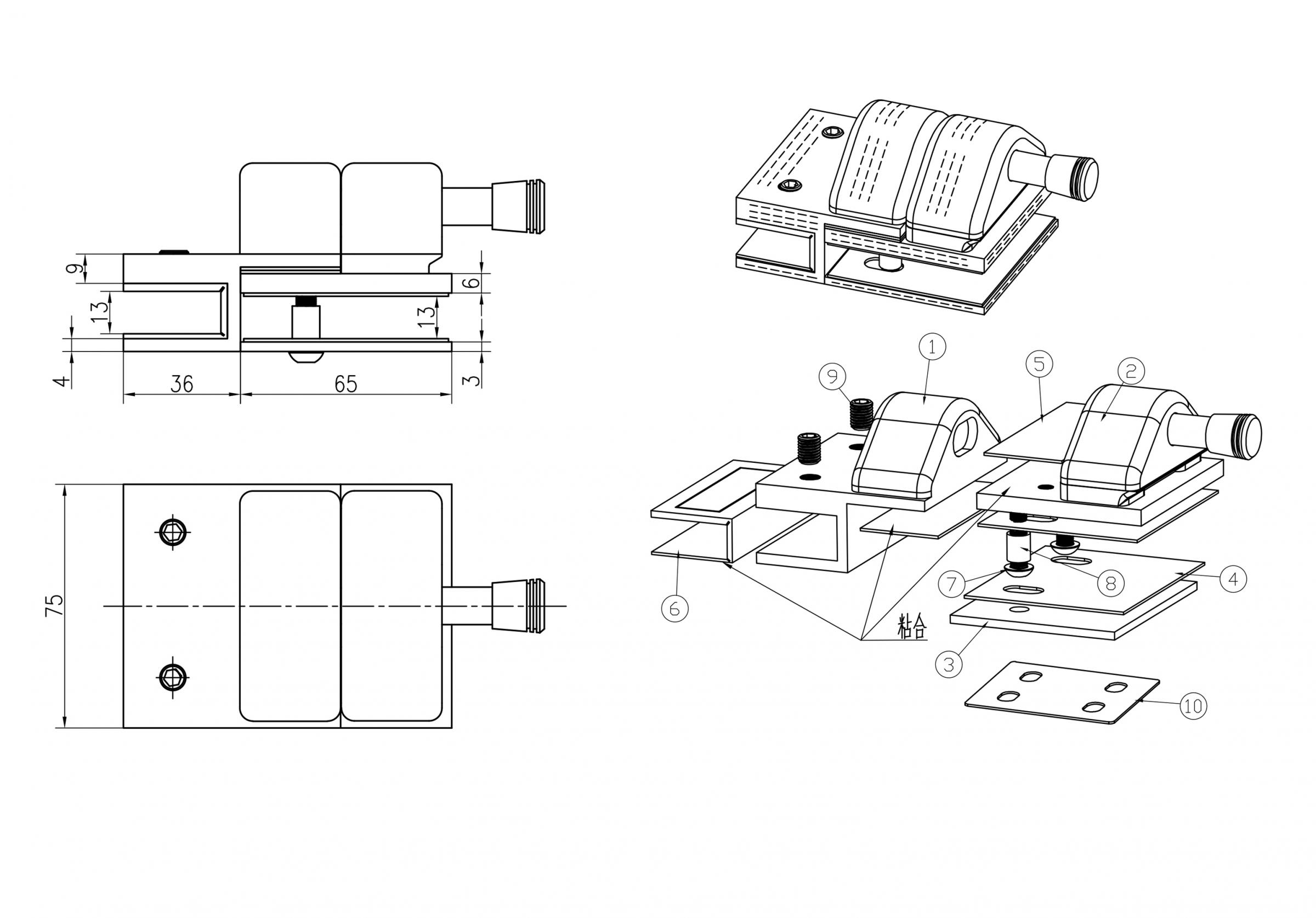 Diámetro mínimo del agujero en el vidrio: ø 10 mm