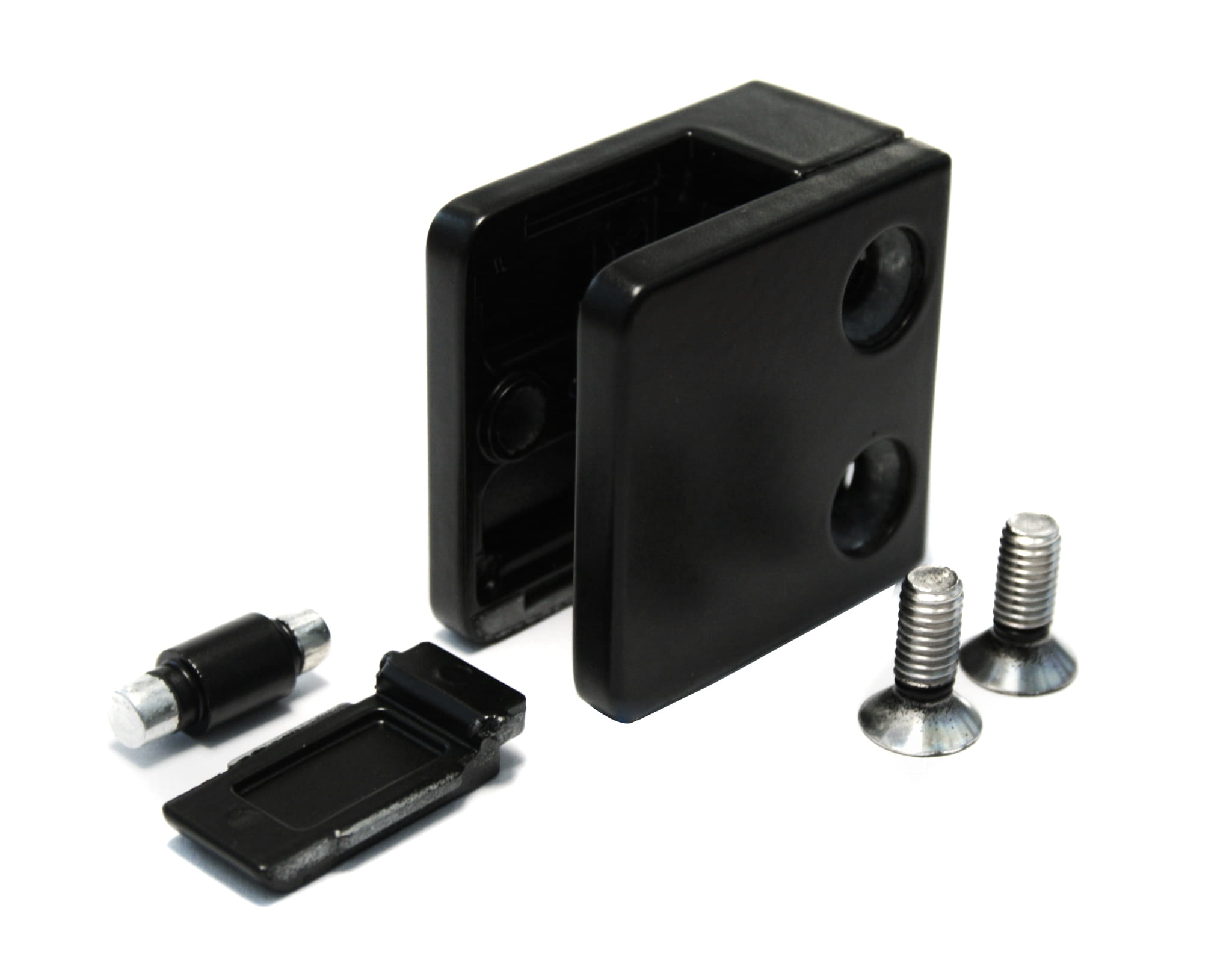 Pinzas para vidrio45x45 mm con placa de protección para superficie plana, ZAMAK, RAL 9005