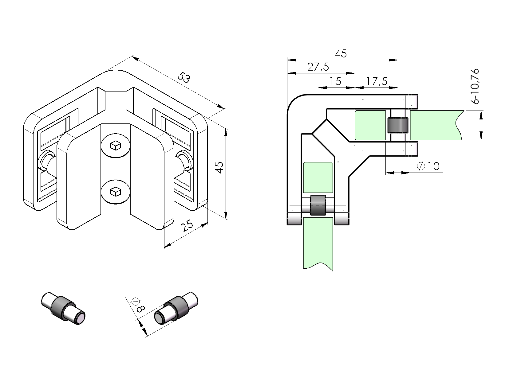 Pinzas para vidrio45x53x25mm, 6-10.76mm, AISI 316, SATINADO