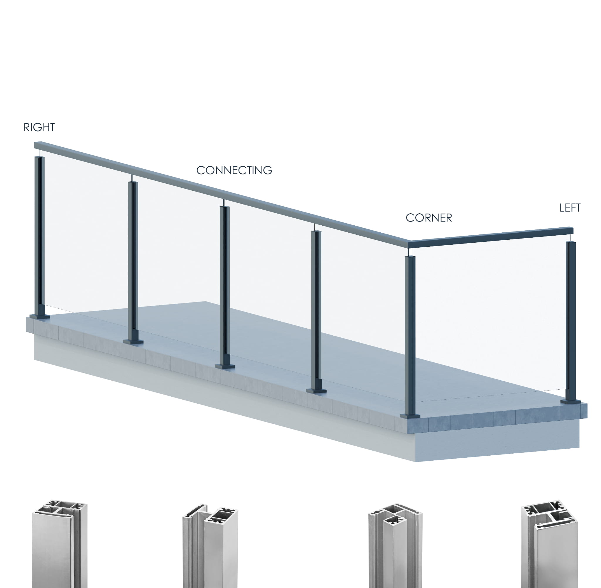 - Poste ranura 55x50mm CONEXIÓN con pasamanos, ALUMINIO EN BRUTO