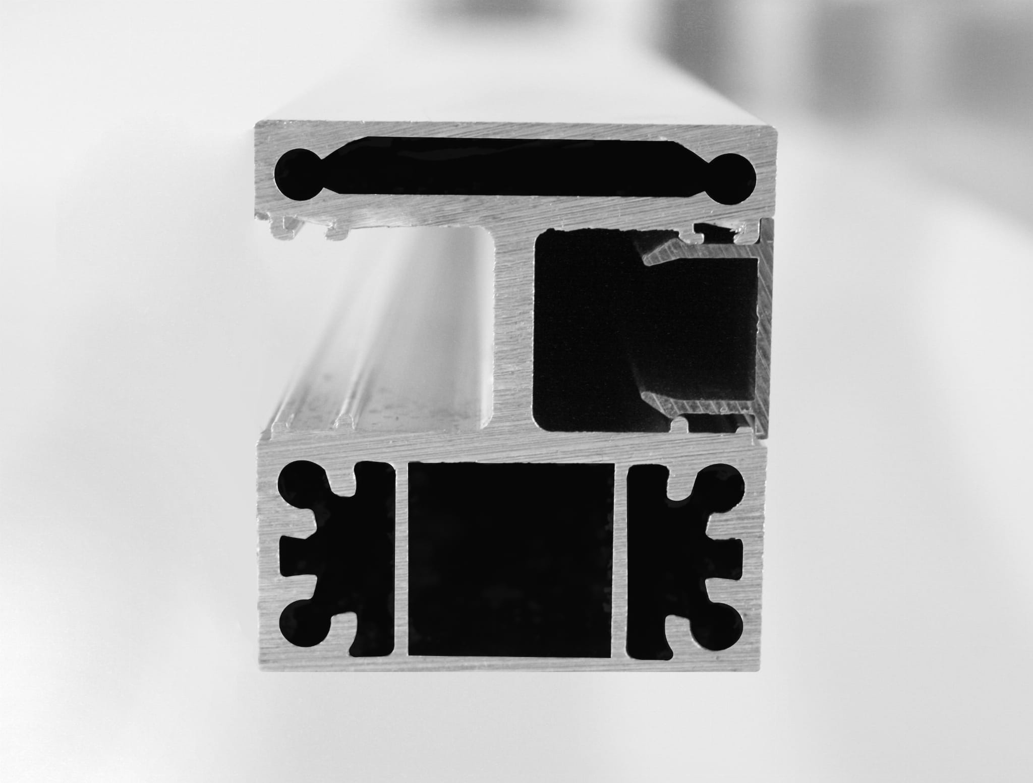 Poste hecho de perfil de aluminio de 55x50 mm, superficie en bruto (para recubrimiento en polvo).