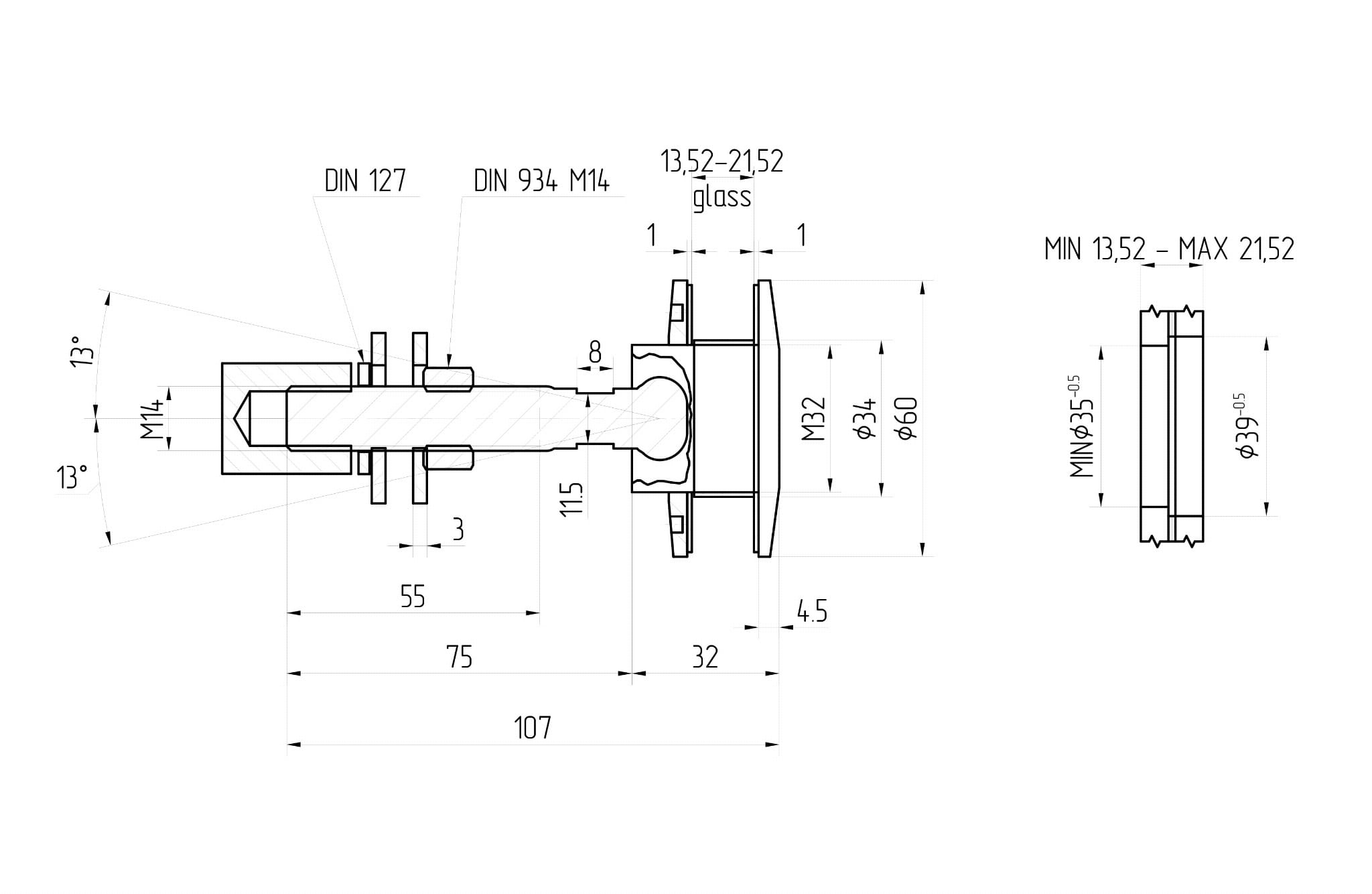 - Agujero mínimo de montaje en el vidrio: Ø 35 mm