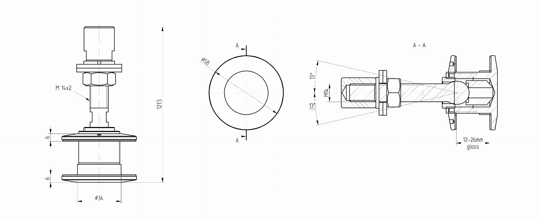 - El orificio mínimo de montaje en el vidrio - Ø 34 mm